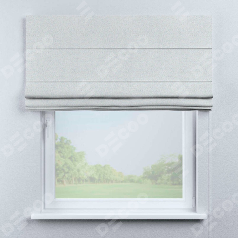 Римская штора производителя «Cortin», используется для проёма, пошита из ткани блэкаут однотонный дымчато-белый, артикул ткани 101. Имеет универсальный механизм и подходит для монтажа: на потолок, на стену и в нишу.