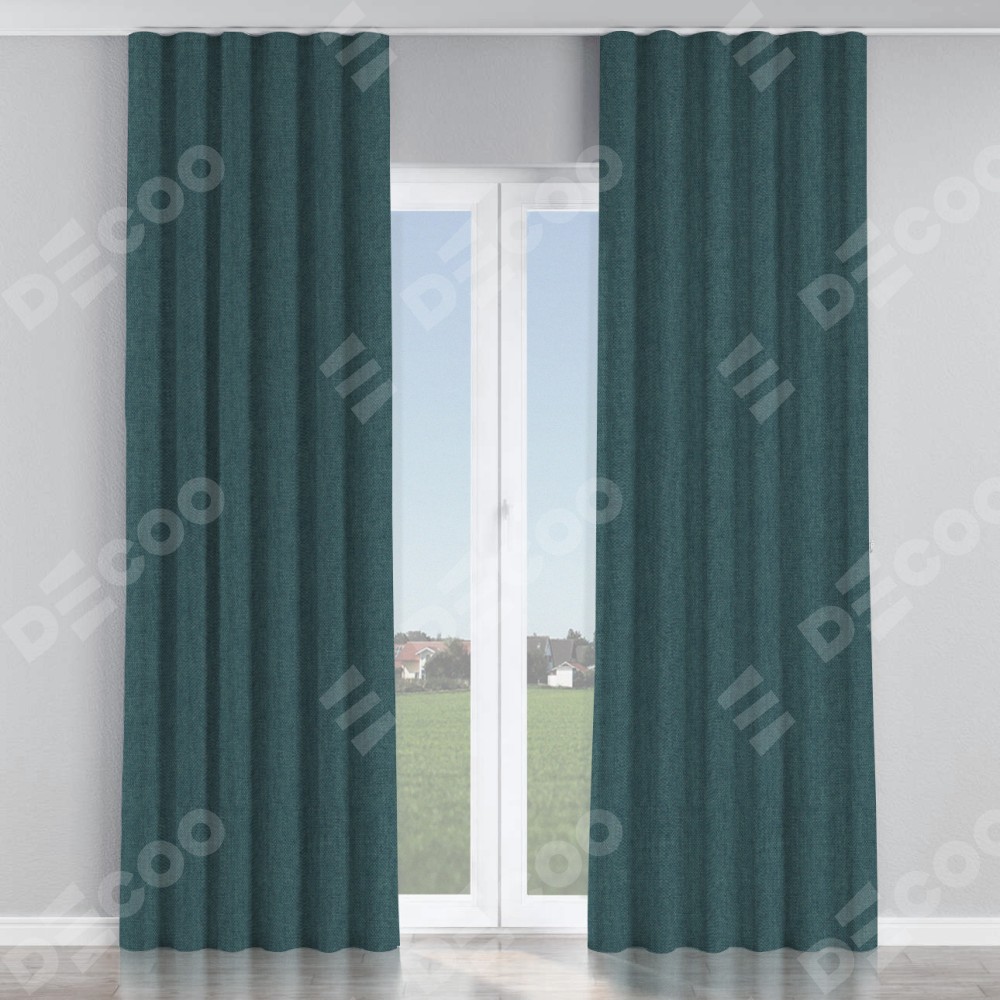 Комплект прямых штор, от производителя «Cortin», пошиты из ткани лён димаут серо-синий, артикул ткани 03238. С изнаночной стороны в верхней части штор пристрачивается шторная лента с декоративными складками «Волна». Для создания элегантных складок прямые шторы шьются по стандарту с коэффициентом 1:2 (на 100 см. ширины проёма 200 см. ширины ткани).