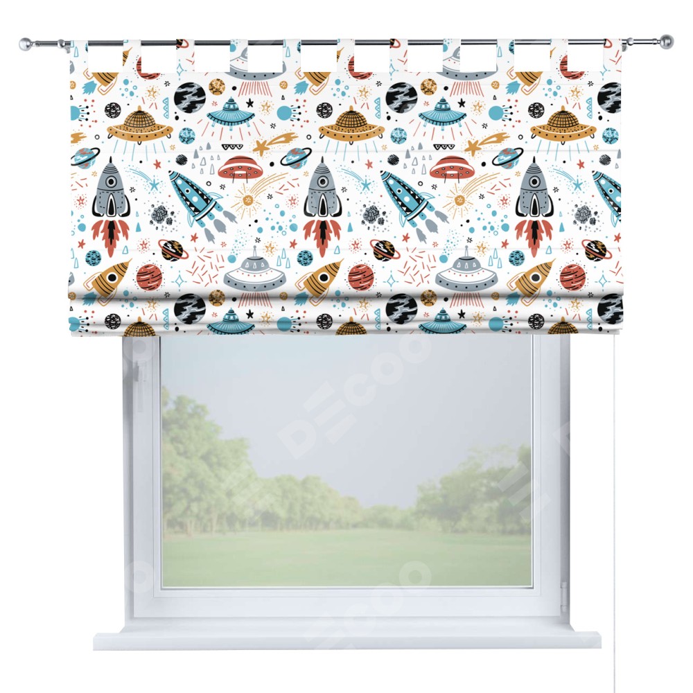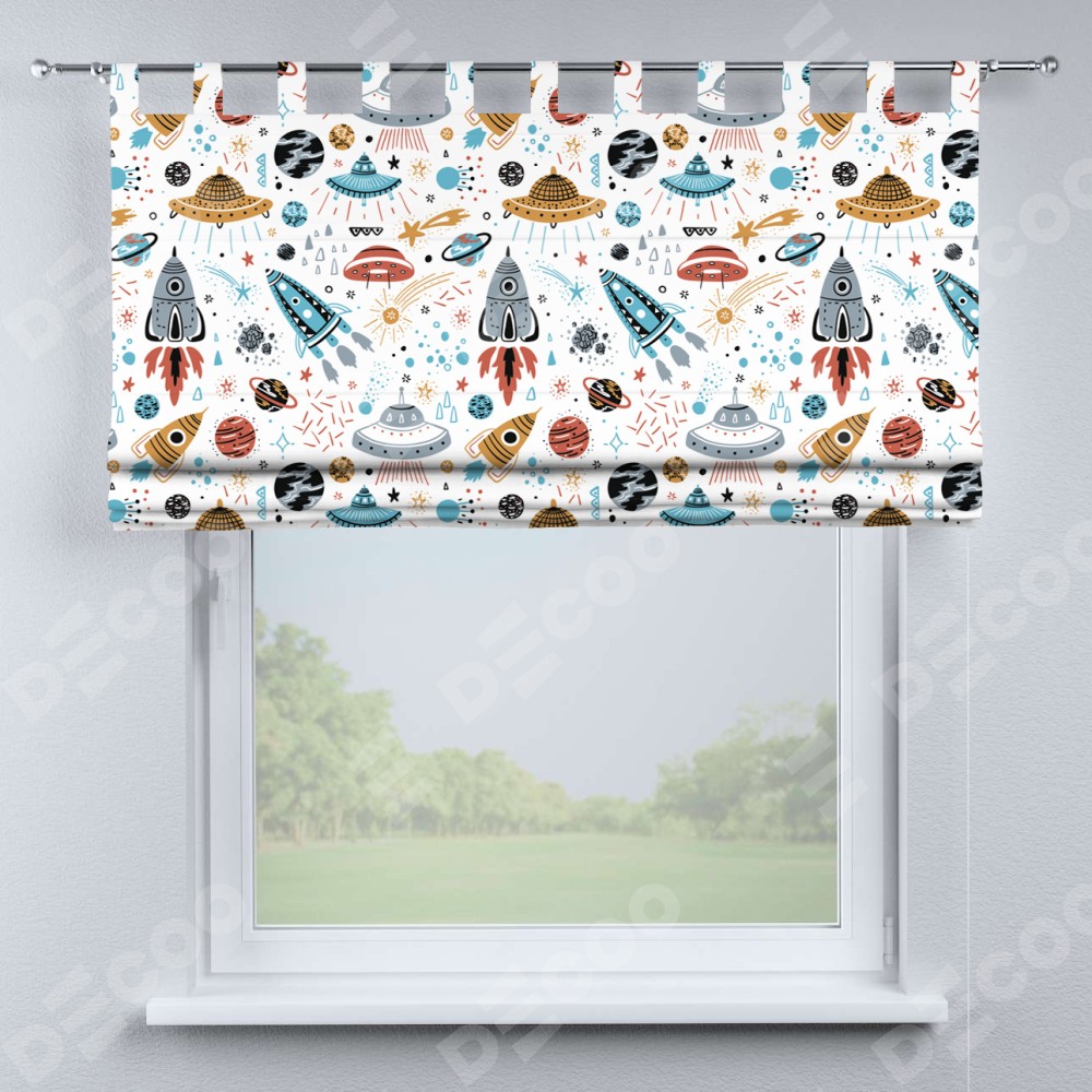 Римская штора производителя «Cortin», используется для проёма, пошита из ткани блэкаут с нанесением сублимационной печати «Космическое приключение». Данная модель пошита на петлях, комплектуется на выбор круглым карнизом и подходит для монтажа на стену. Римская штора на петлях имеет простую систему регулировки высоты, отличительным преимуществом данной модели является простой способ монтажа. Достаточно повесить ее на трубу и штора готова!