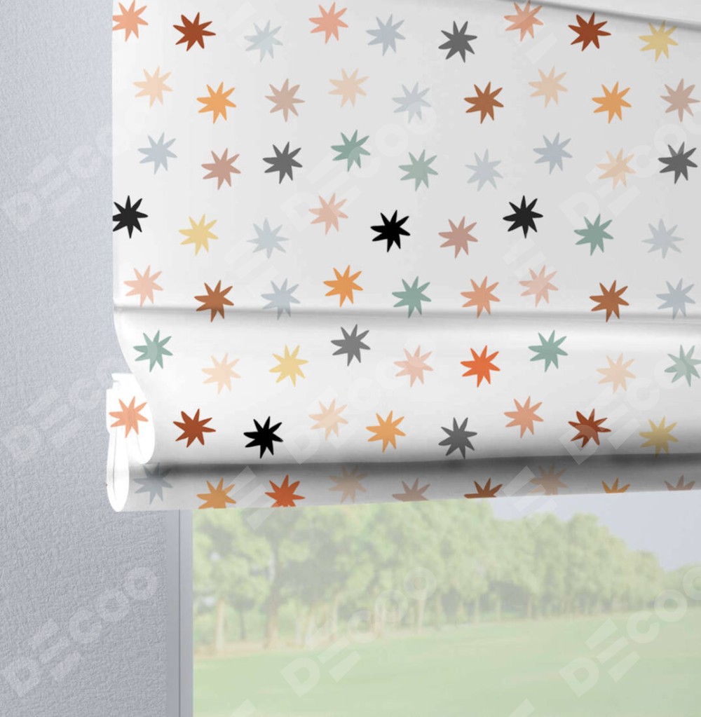 Римская штора на петлях «Разноцветные звёзды» отлично подойдёт для интерьера:.