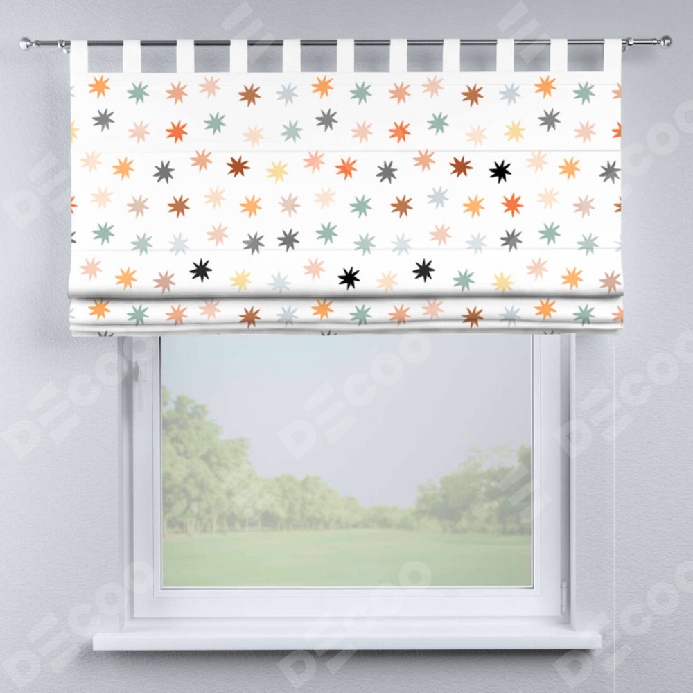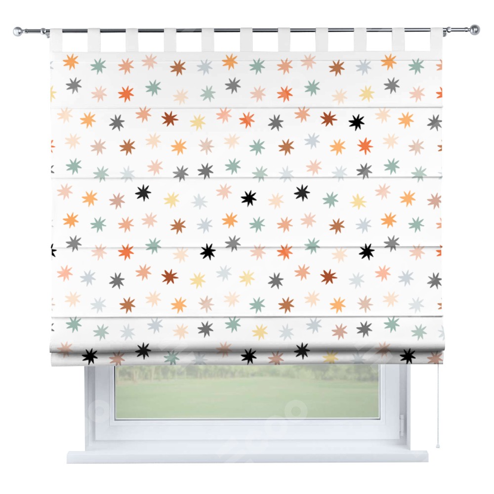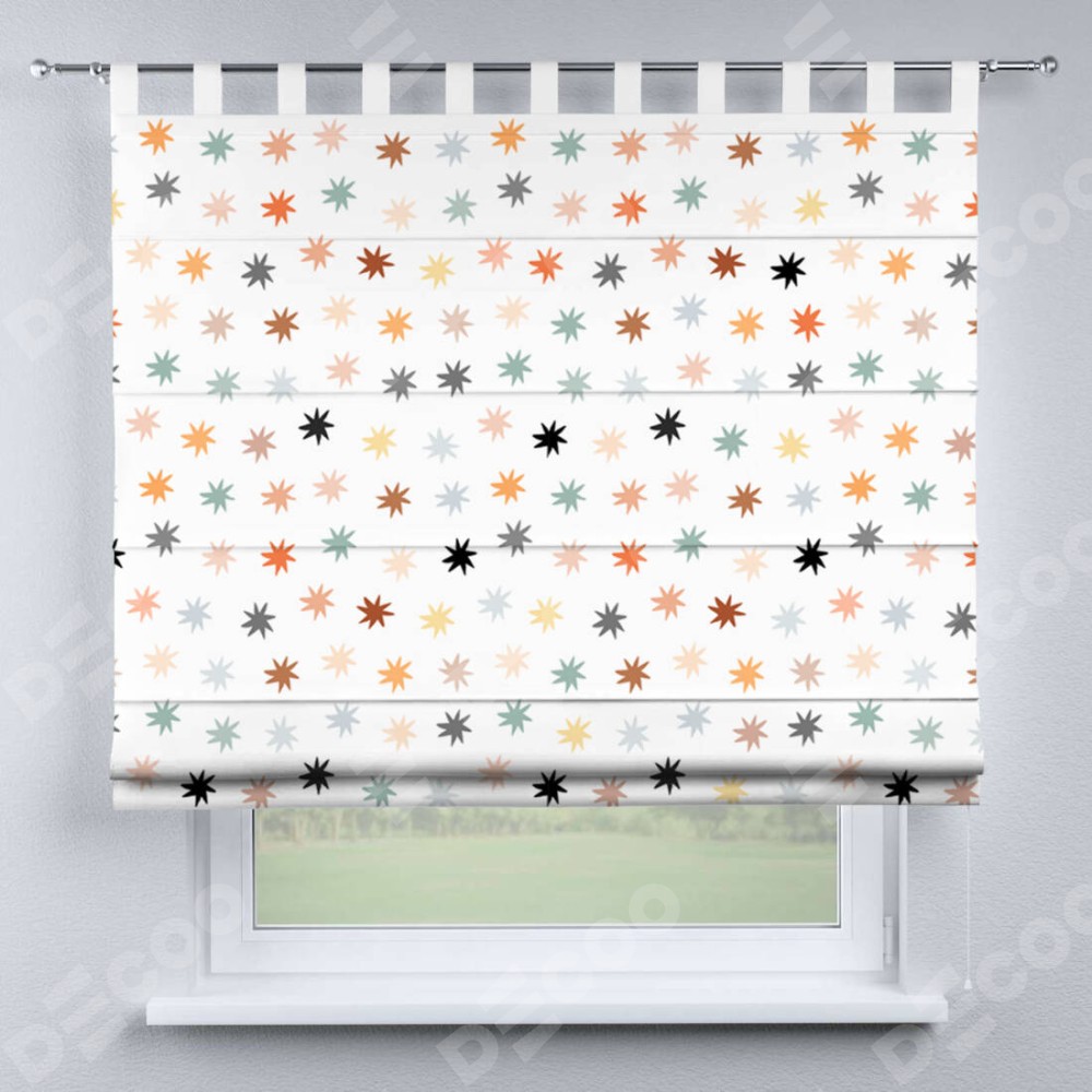 Римская штора на петлях «Разноцветные звёзды» предоставлена в следующих характеристиках: