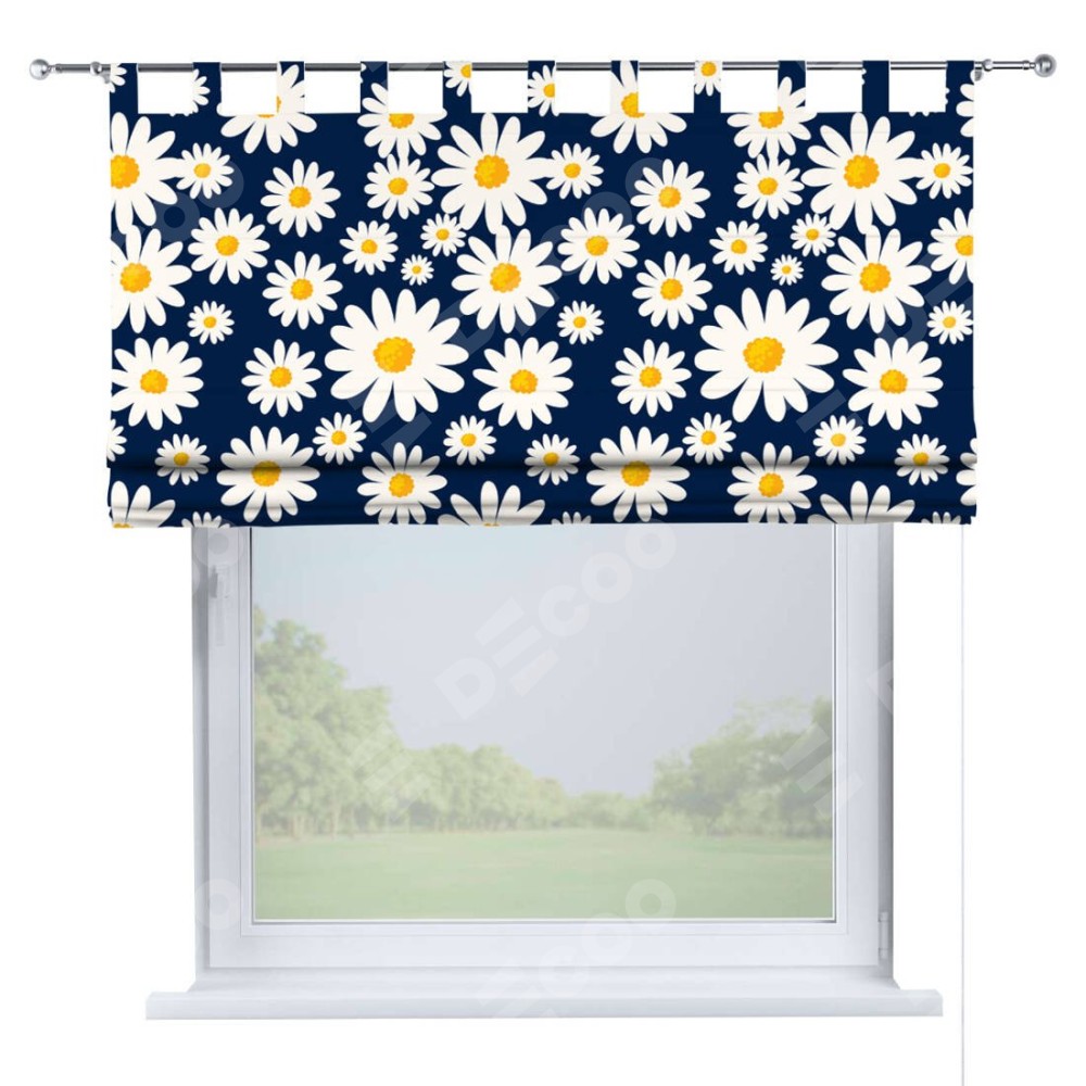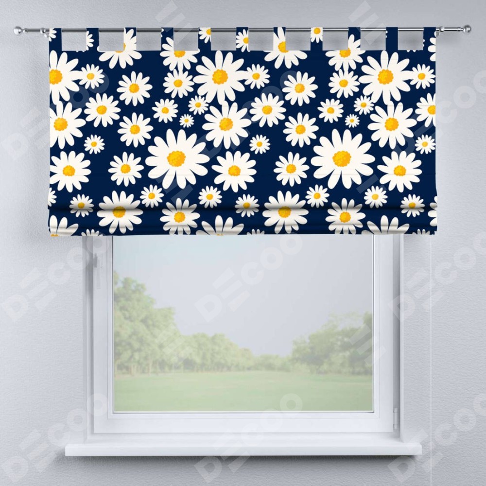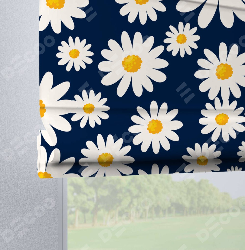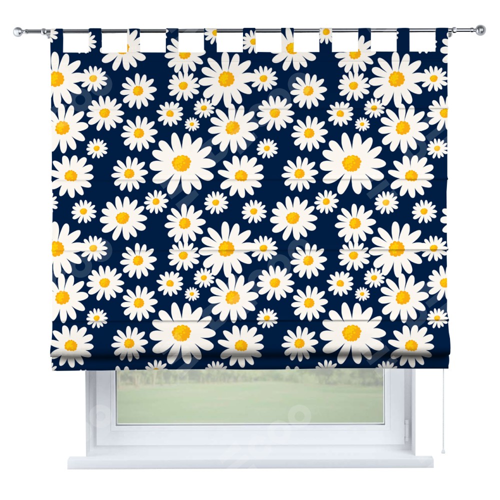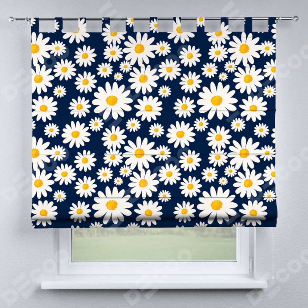 Римская штора производителя «Cortin», используется для проёма, пошита из ткани блэкаут с нанесением сублимационной печати «Яркие ромашки». Данная модель пошита на петлях, комплектуется на выбор круглым карнизом и подходит для монтажа на стену. Римская штора на петлях имеет простую систему регулировки высоты, отличительным преимуществом данной модели является простой способ монтажа. Достаточно повесить ее на трубу и штора готова!