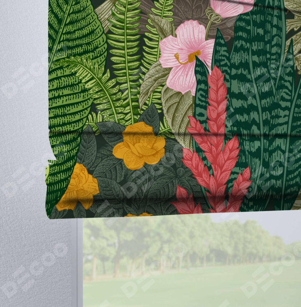 Римская штора на петлях «Яркое цветение» предоставлена в следующих характеристиках: