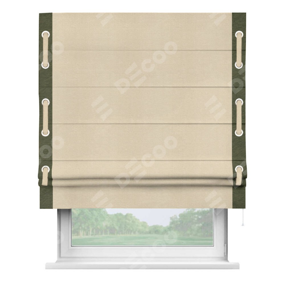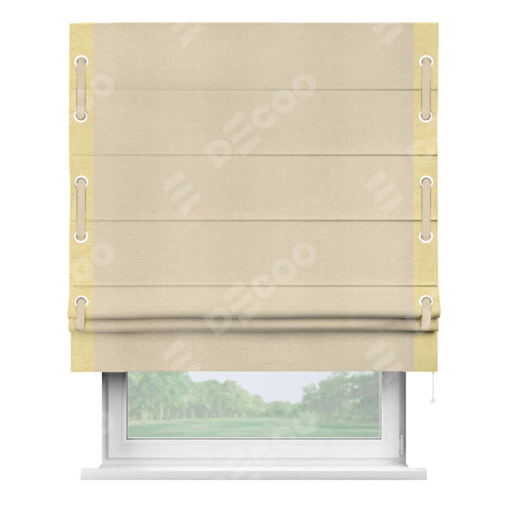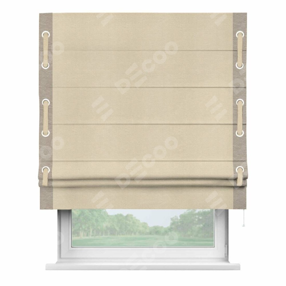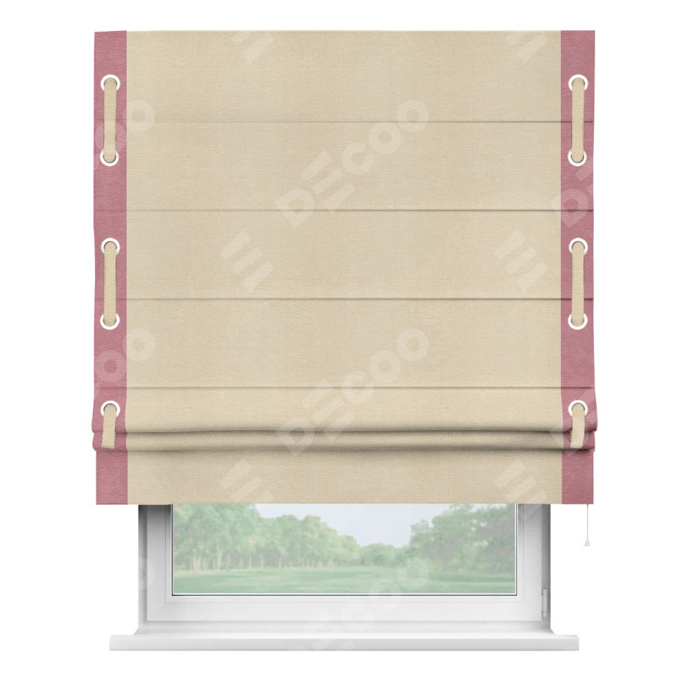 Римская штора «Кортин» с кантом Стрим Дуо (люверсы с пояском), для проема, ткань софт однотонный бежевый лайт