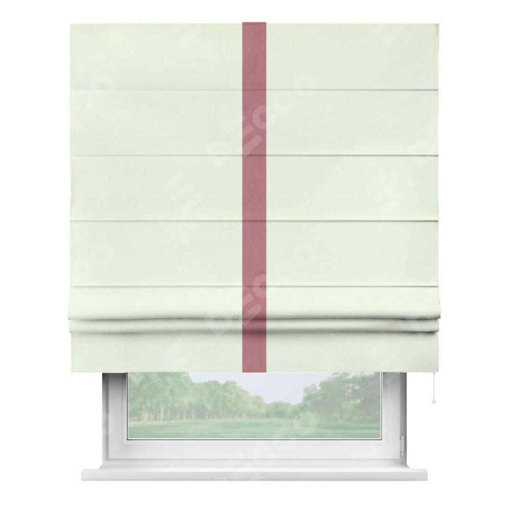 Римская штора производителя «Cortin», используется для проёма, пошита из ткани вельвет кремовый, артикул ткани 85524. Отделка шторы кантом «Хайвей», ткань для канта используется из вельвета разной расцветки на выбор. Имеет универсальный механизм и подходит для монтажа: на потолок, на стену и в нишу.