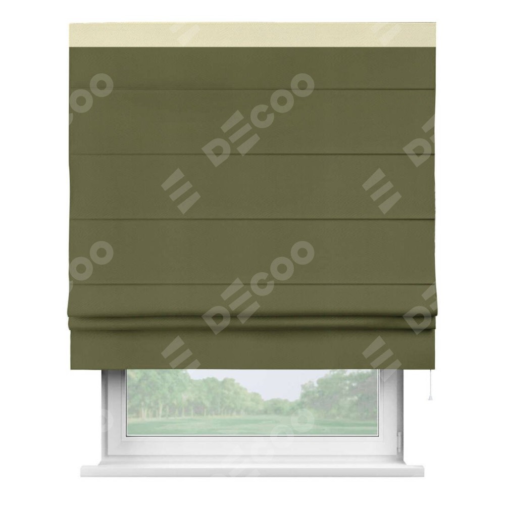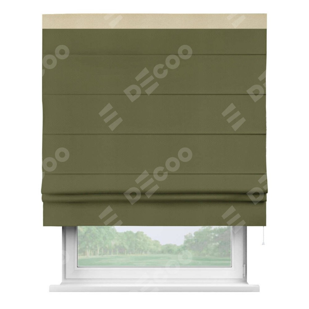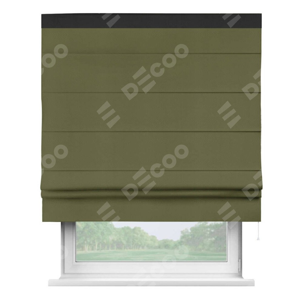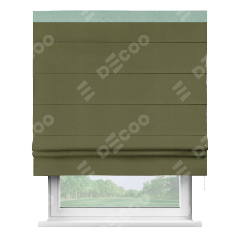 Римская штора «Кортин» с кантом Кинг, для проема, ткань блэкаут однотонный зелёный