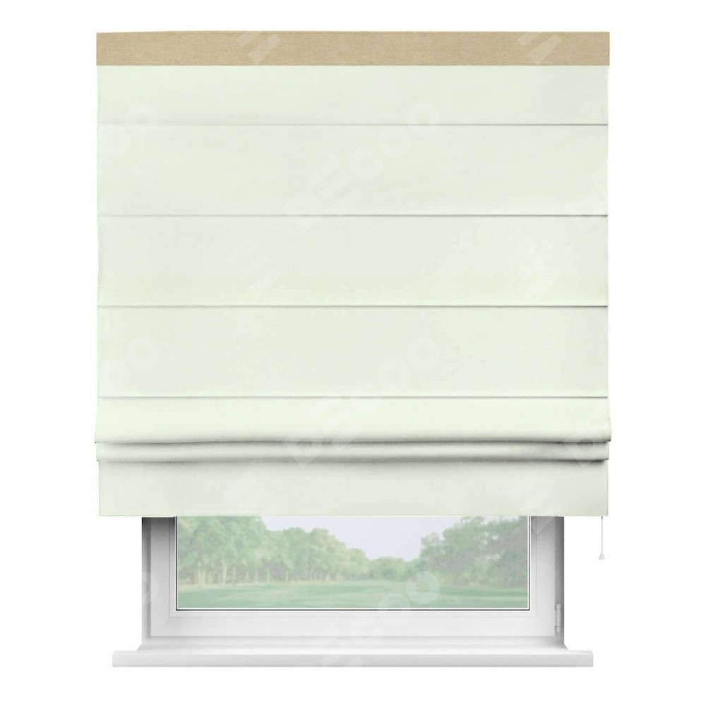 Римская штора производителя «Cortin», используется для проёма, пошита из ткани вельвет кремовый, артикул ткани 85524. Отделка шторы кантом «Кинг», ткань для канта используется из вельвета разной расцветки на выбор. Имеет универсальный механизм и подходит для монтажа: на потолок, на стену и в нишу.