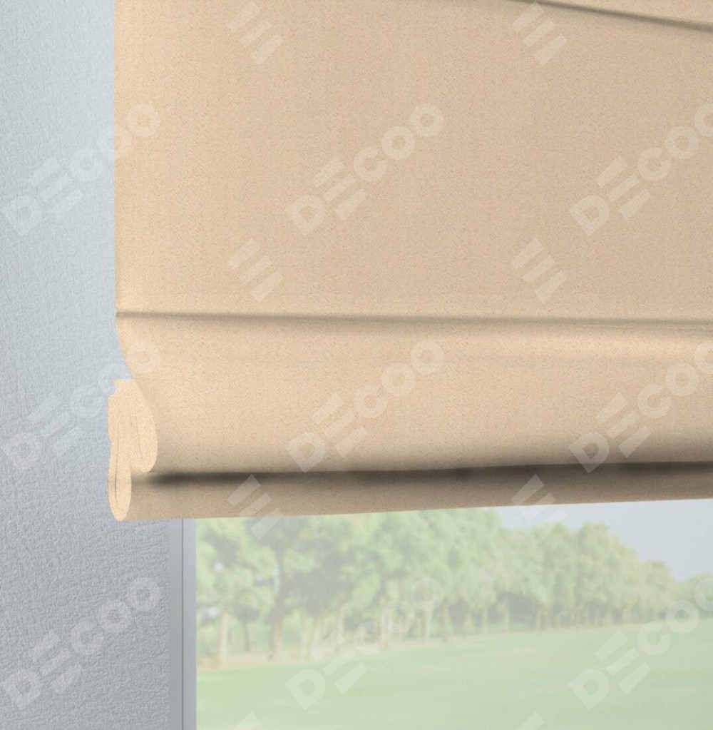Римская штора производителя «Cortin», используется для проёма, пошита из ткани блэкаут тиснение с блеском бежевый, артикул ткани 34627. Изнаночная сторона материала черного цвета, что обеспечивает необходимую светонепроницаемость. Данная модель пошита на петлях, комплектуется на выбор круглым карнизом и подходит для монтажа на стену. Римская штора на петлях имеет простую систему регулировки высоты, отличительным преимуществом данной модели является простой способ монтажа. Достаточно повесить ее на трубу и штора готова!