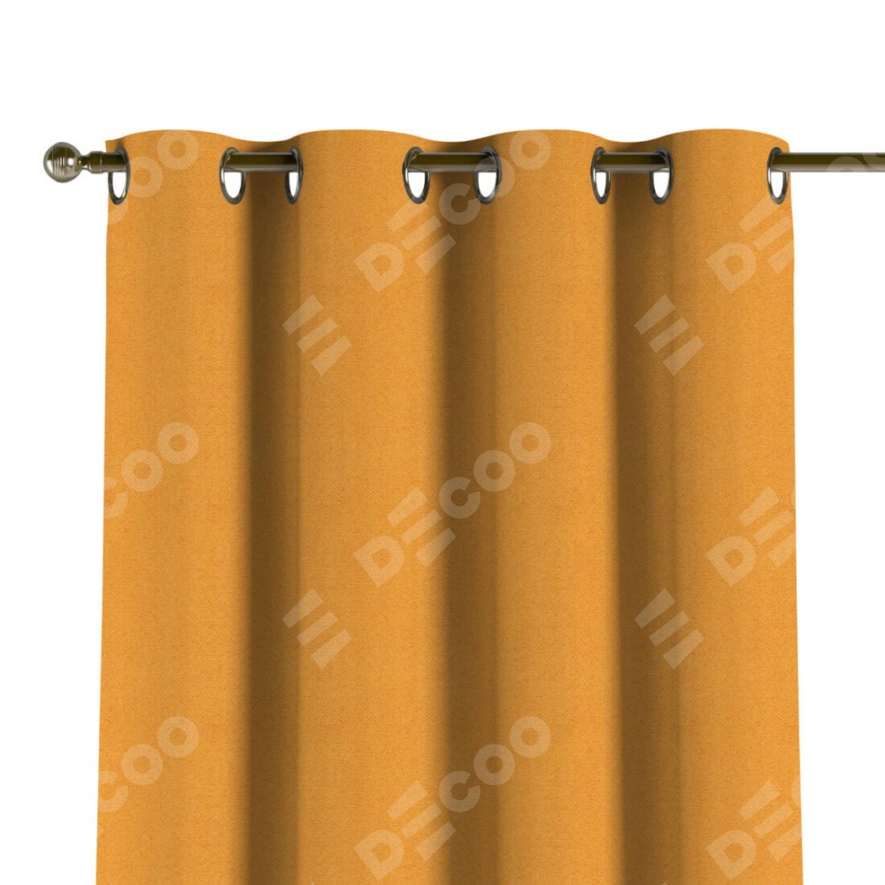 Комплект прямых штор, от производителя «Cortin», пошиты из ткани блэкаут с блеском золотой, артикул ткани 34626. Обратная сторона основного материала черного цвета, что обеспечивает необходимую светонепроницаемость. Данная модель пошита на люверсах, комплектуется на выбор круглым карнизом и подходит для монтажа на стену или потолок. Прямые шторы на люверсах шьются по стандарту с коэффициентом 1/2 (на 100 см. ширины проёма 200 см. ширины ткани), отличительным преимуществом данной модели является простой способ монтажа. Достаточно повесить ее на трубу и штора готова!