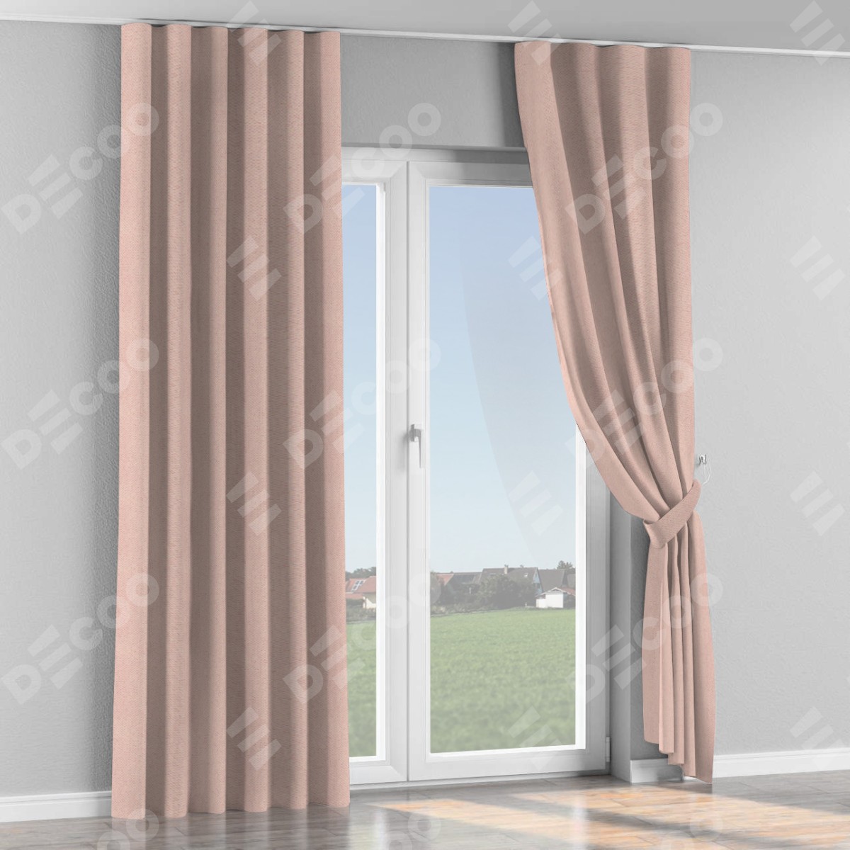 Комплект прямых штор, от производителя «Cortin», пошиты из ткани блэкаут с блеском сиреневый, артикул ткани 34649. С изнаночной стороны в верхней части штор пристрачивается шторная лента с декоративными складками «Волна». Обратная сторона основного материала черного цвета, что обеспечивает необходимую светонепроницаемость. Для создания элегантных складок прямые шторы шьются по стандарту с коэффициентом 1:2 (на 100 см. ширины проёма 200 см. ширины ткани).