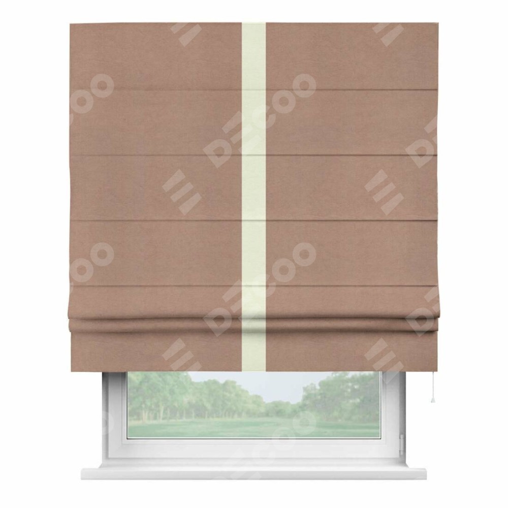 Римская штора производителя «Cortin», используется для проёма, пошита из ткани вельвет брусничный джем, артикул ткани 17750. Отделка шторы кантом «Хайвей», ткань для канта используется из вельвета разной расцветки на выбор. Имеет универсальный механизм и подходит для монтажа: на потолок, на стену и в нишу.