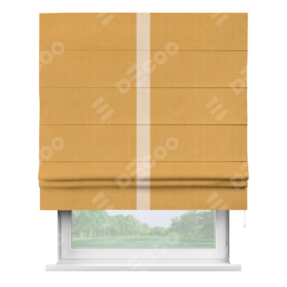 Римская штора «Кортин» с кантом Хайвэй, для проема, ткань блэкаут с блеском золотой
