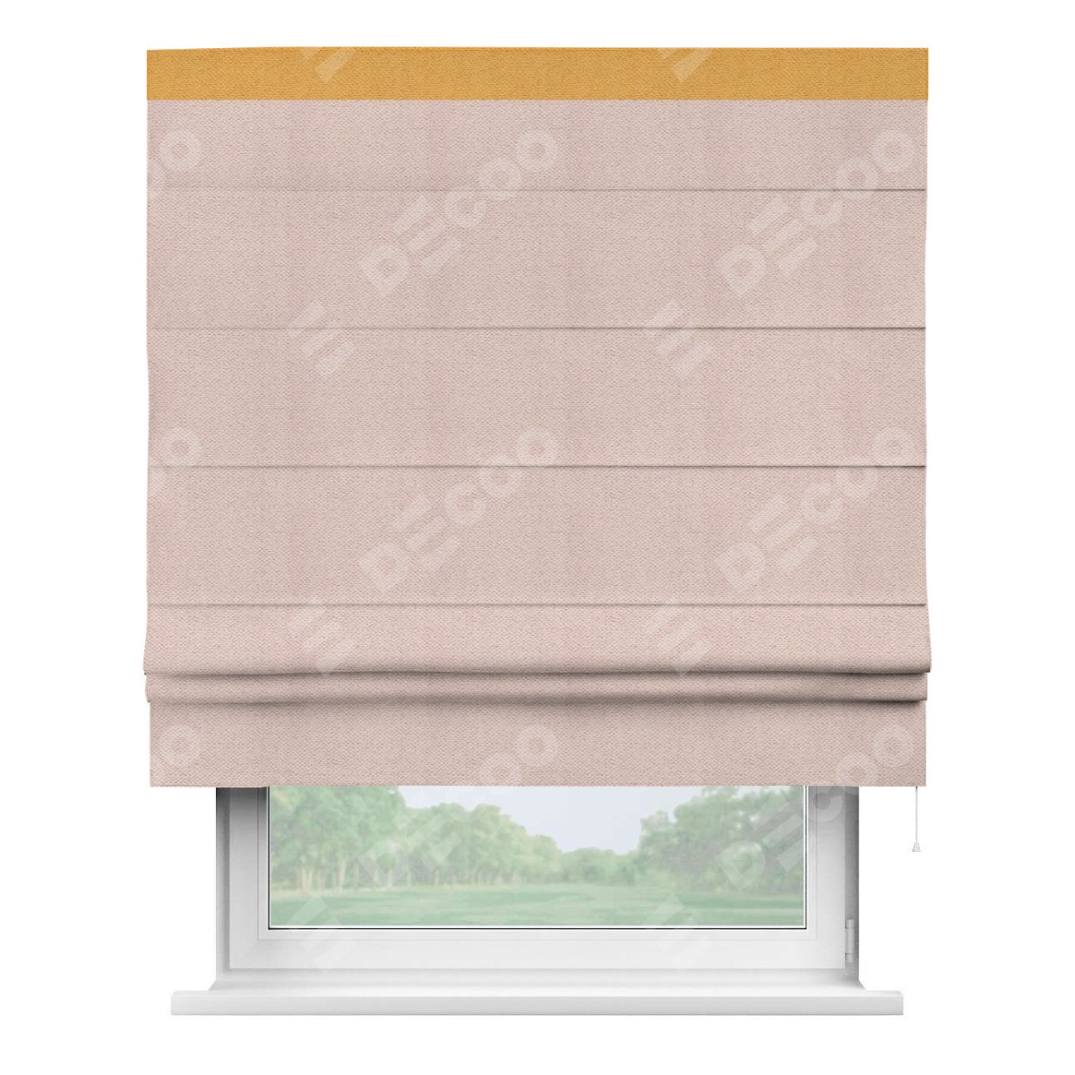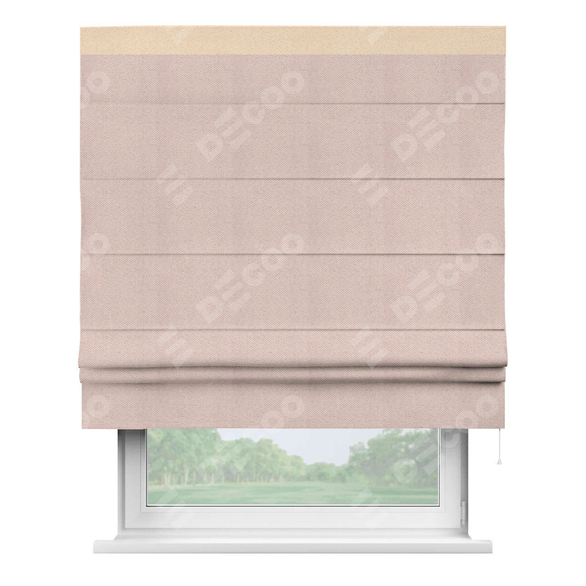 Римская штора производителя «Cortin», используется для проёма, пошита из ткани блэкаут с блеском сиреневый, артикул 34649. Отделка шторы кантом «Кинг», ткань для канта используется из блэкаута с блеском разной расцветки на выбор. Изнаночная сторона материала черного цвета, что обеспечивает необходимую светонепроницаемость. Имеет универсальный механизм и подходит для монтажа: на потолок, на стену и в нишу.