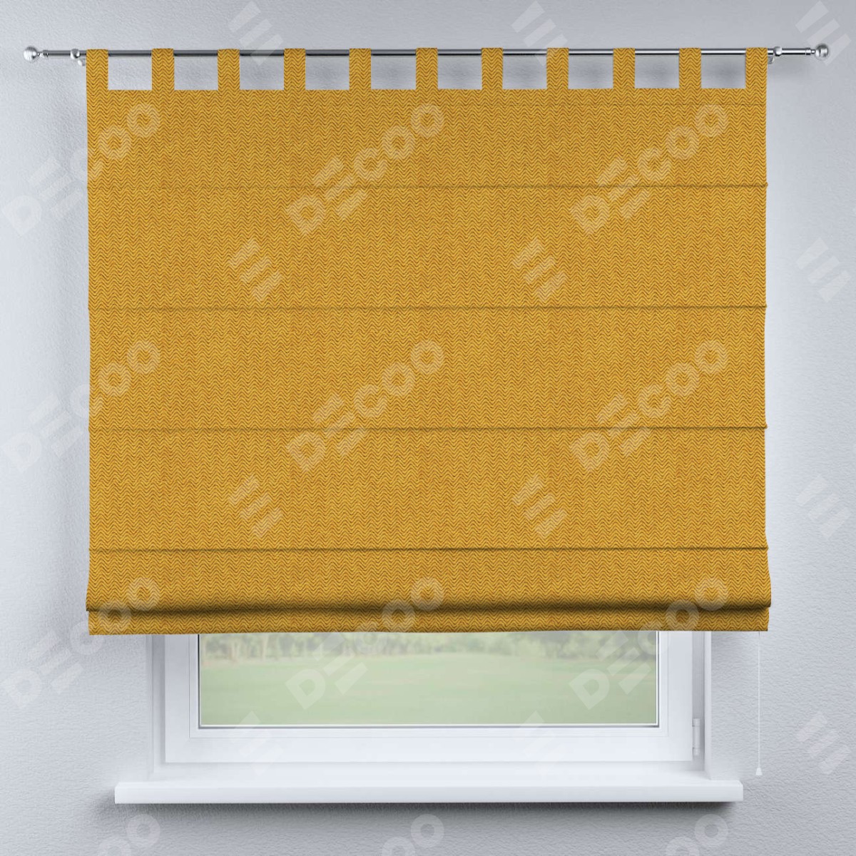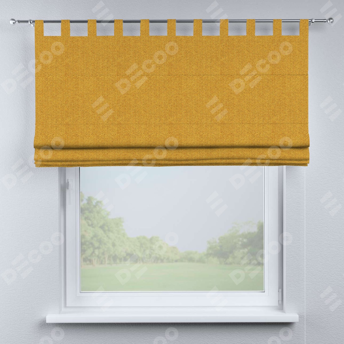 Римская штора производителя «Cortin», используется для проёма, пошита из ткани твид блэкаут медово-желтый, артикул ткани 21641. Данная модель пошита на петлях, комплектуется на выбор круглым карнизом и подходит для монтажа на стену. Римская штора на петлях имеет простую систему регулировки высоты, отличительным преимуществом данной модели является простой способ монтажа. Достаточно повесить ее на трубу и штора готова!