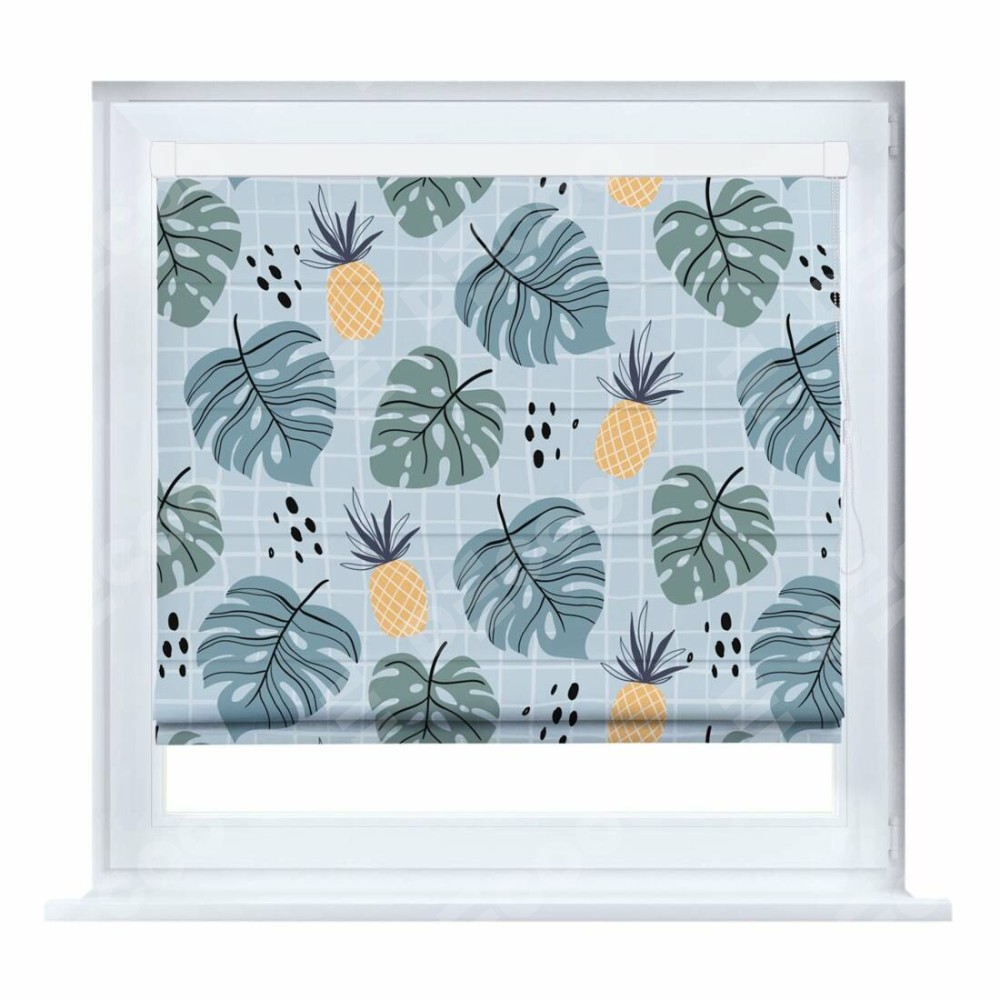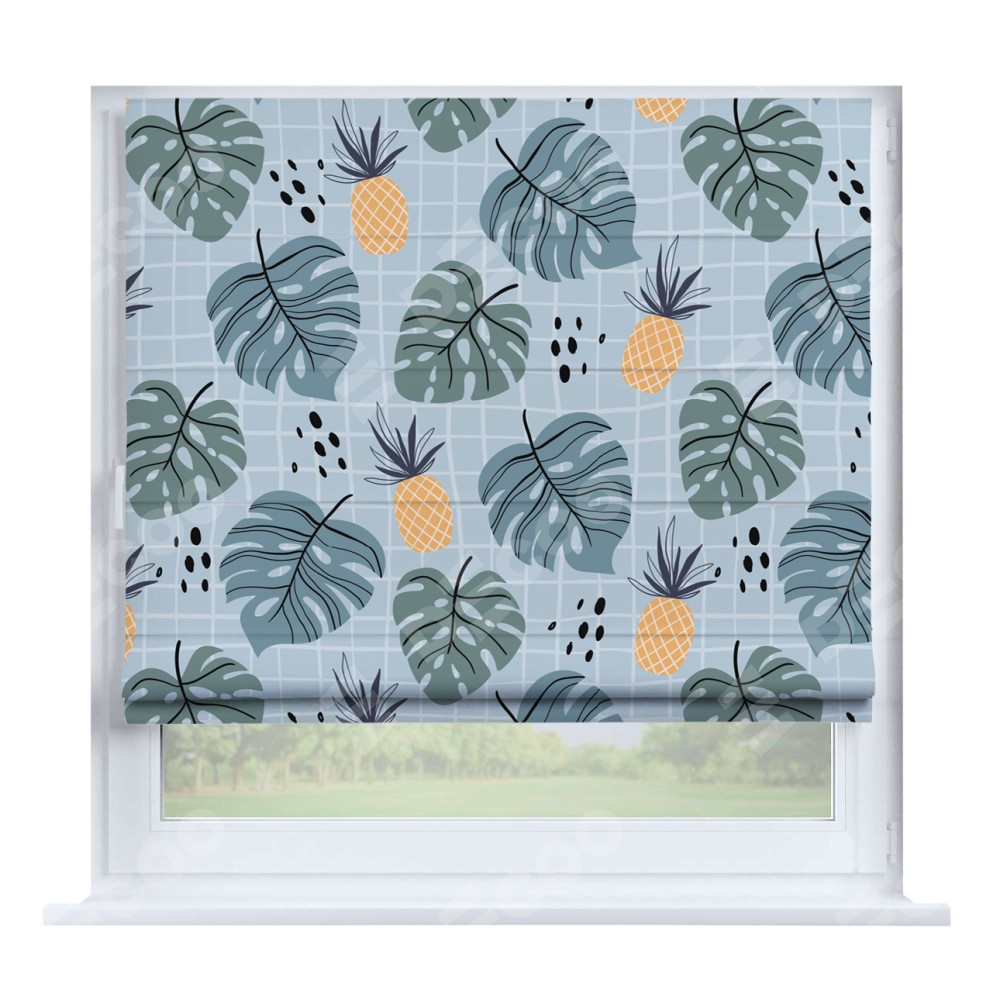 Римская штора «Кортин» на створку «Ананасы и листья монстеры»