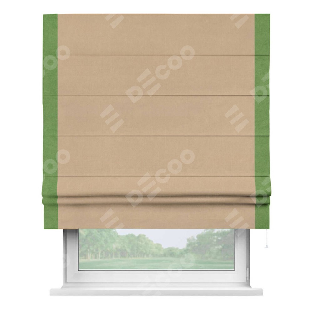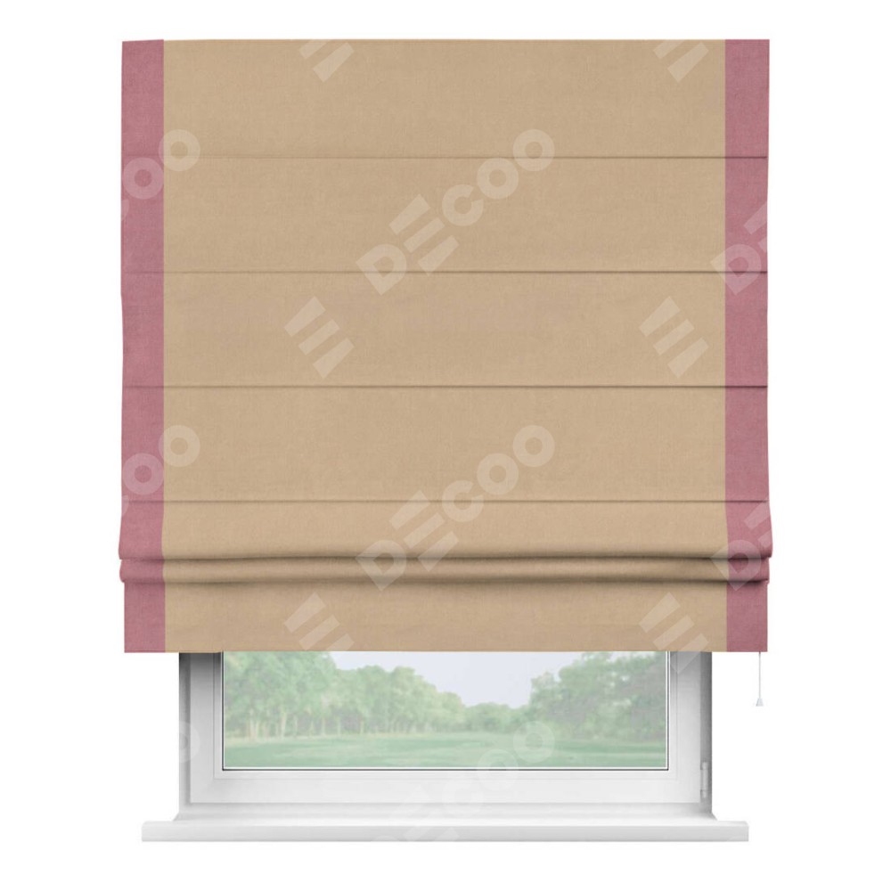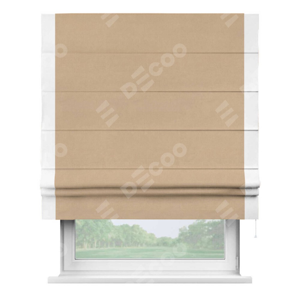 Римская штора «Кортин» с кантом Стрим Дуо, для проема, ткань вельвет песочный