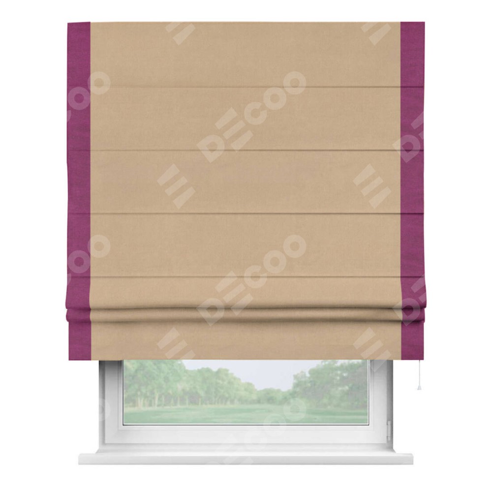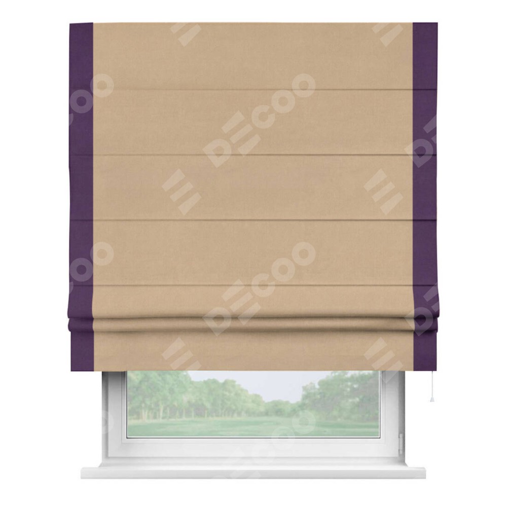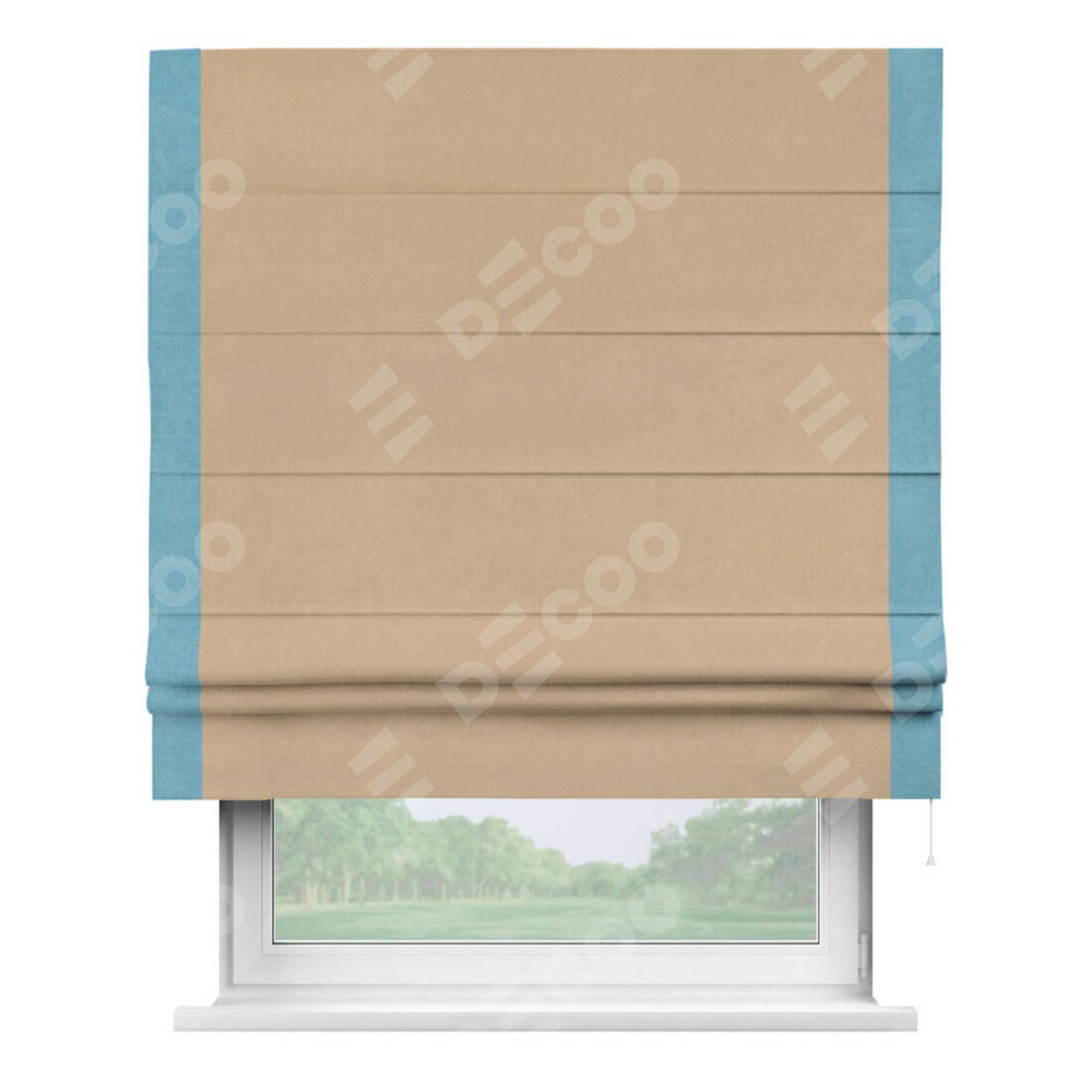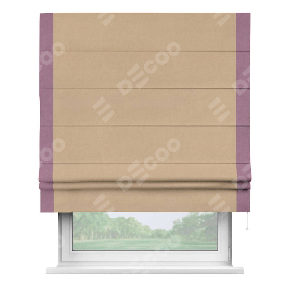 Римская штора «Кортин» с кантом Стрим Дуо, для проема, ткань вельвет песочный