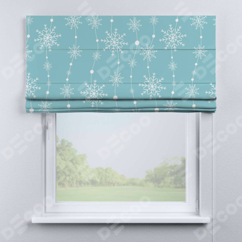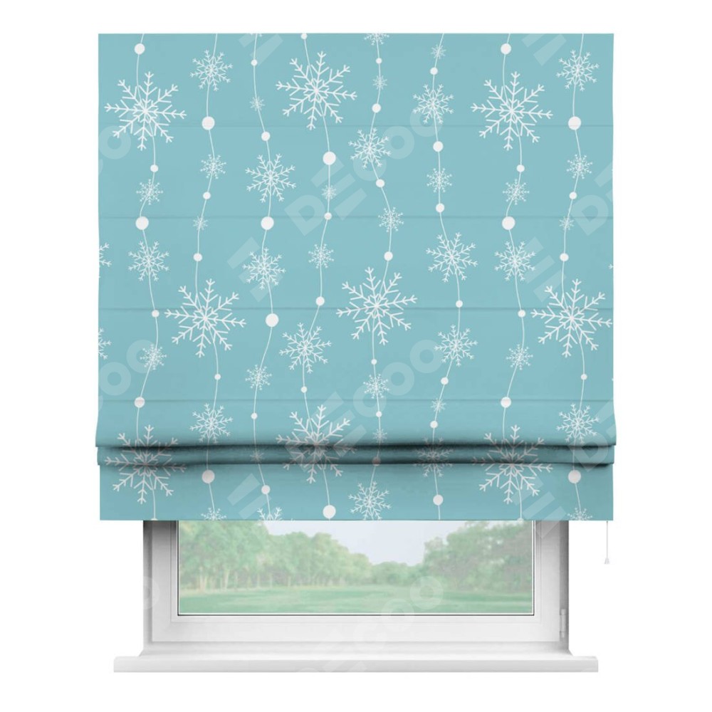 Римская штора «Кортин» для проема «Гирлянда из снежинок» предоставлена в следующих характеристиках: