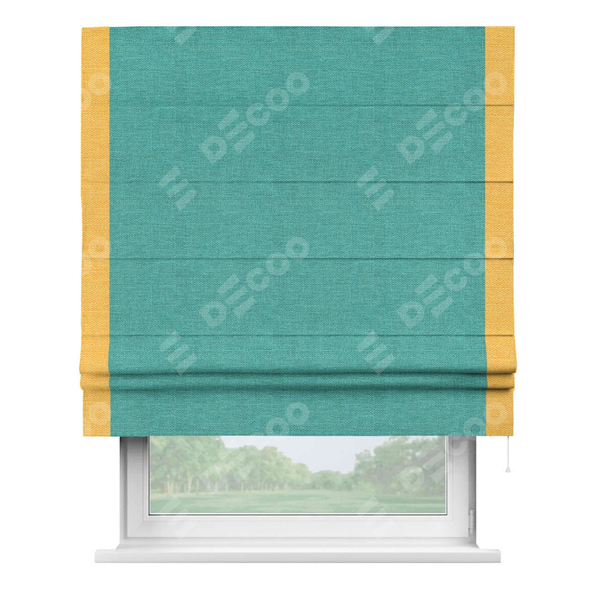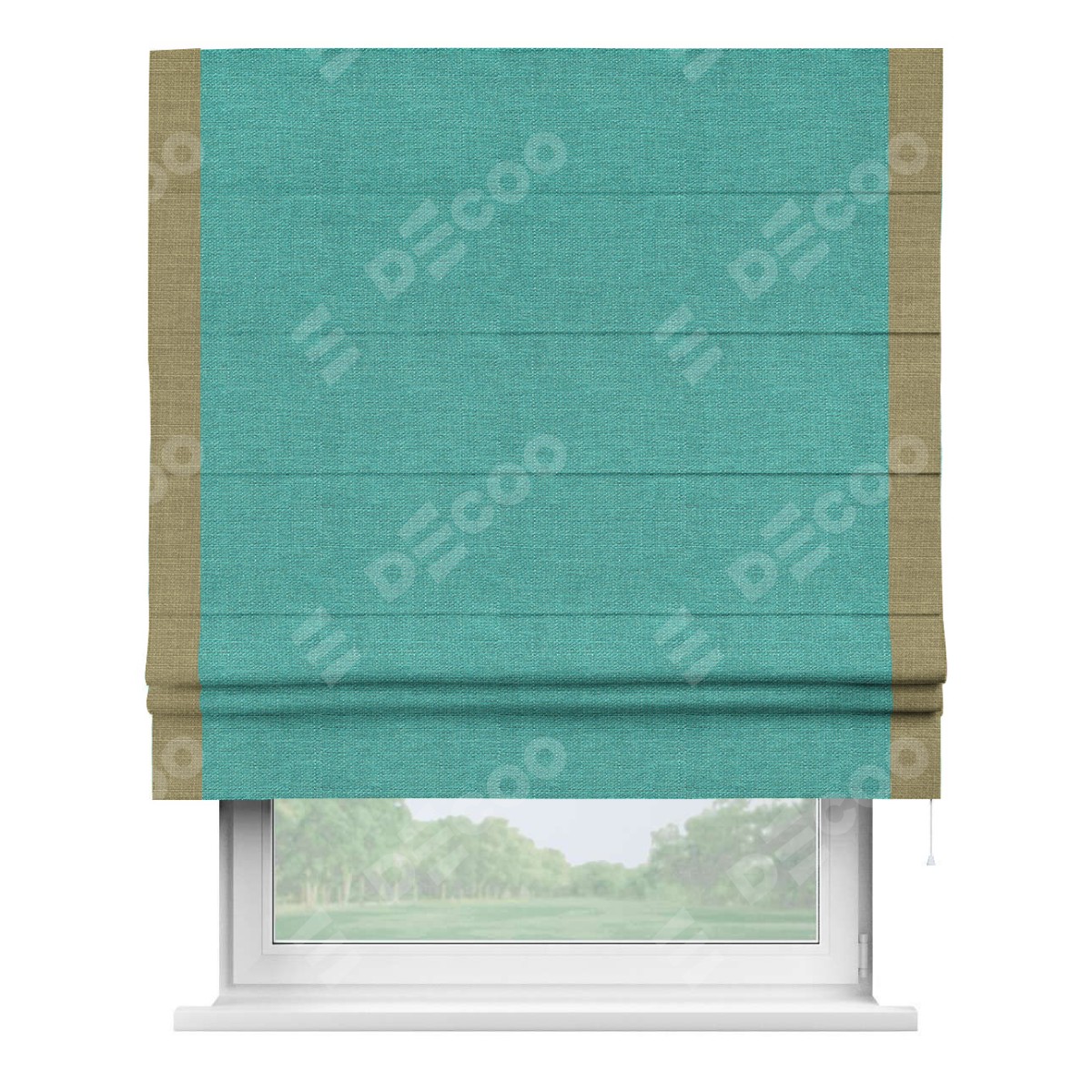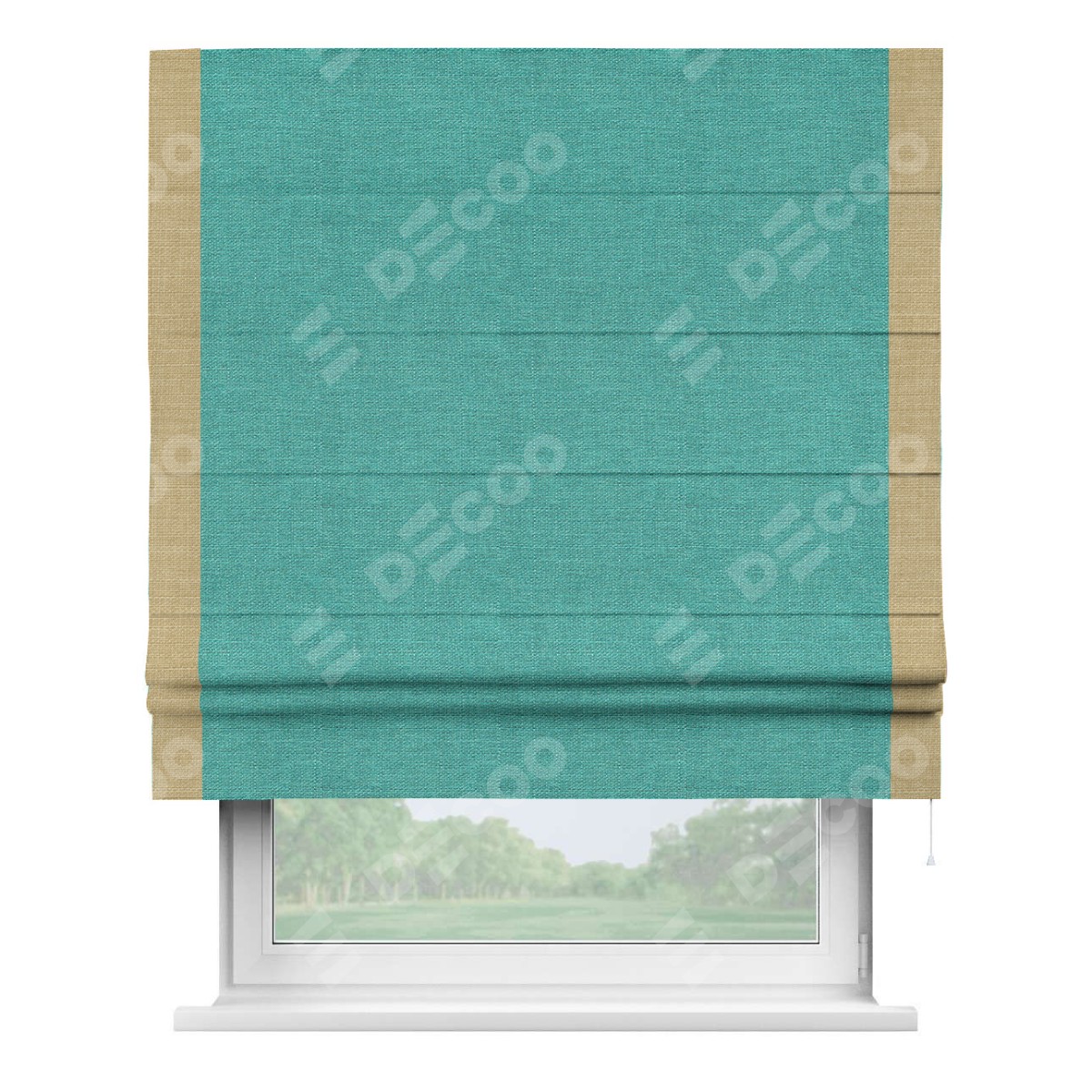 Римская штора «Кортин» с кантом Стрим Дуо, для проема, ткань лён изумрудный