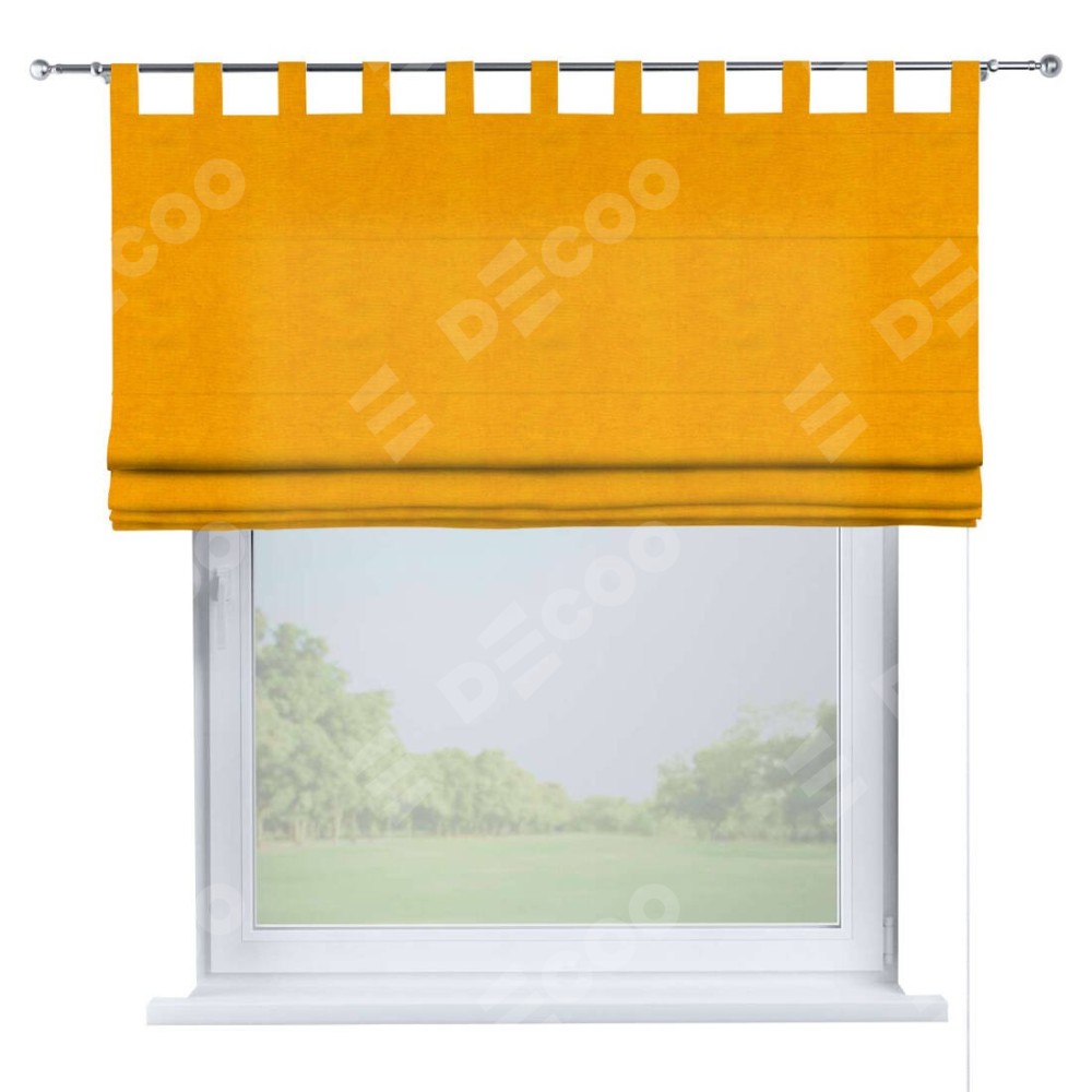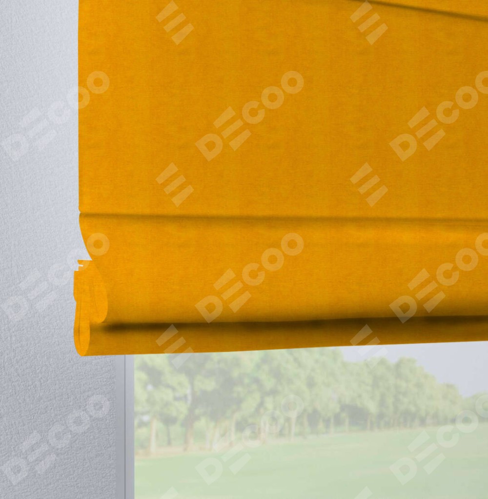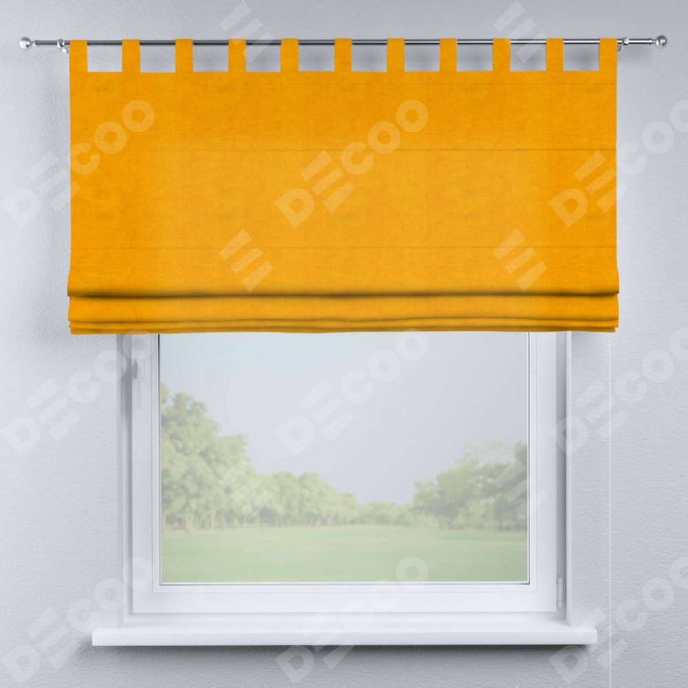 Римская штора производителя «Cortin», используется для проёма, пошита из ткани вельвет желтый, артикул ткани 85547. Данная модель пошита на петлях, комплектуется на выбор круглым карнизом и подходит для монтажа на стену. Римская штора на петлях имеет простую систему регулировки высоты, отличительным преимуществом данной модели является простой способ монтажа. Достаточно повесить ее на трубу и штора готова!