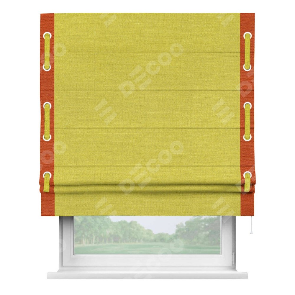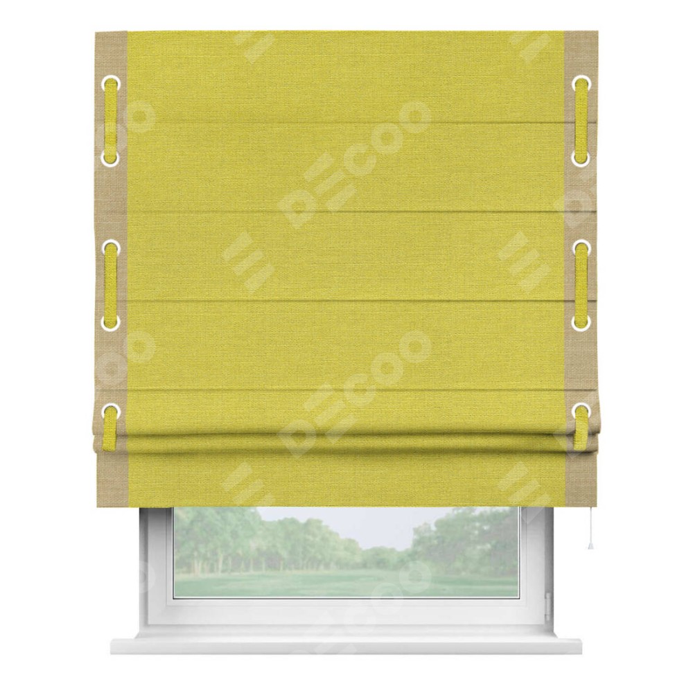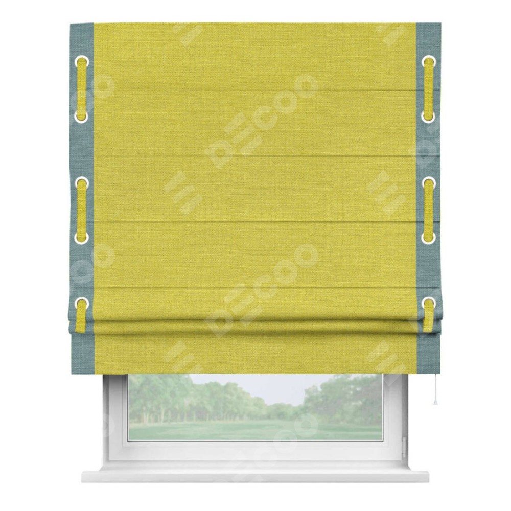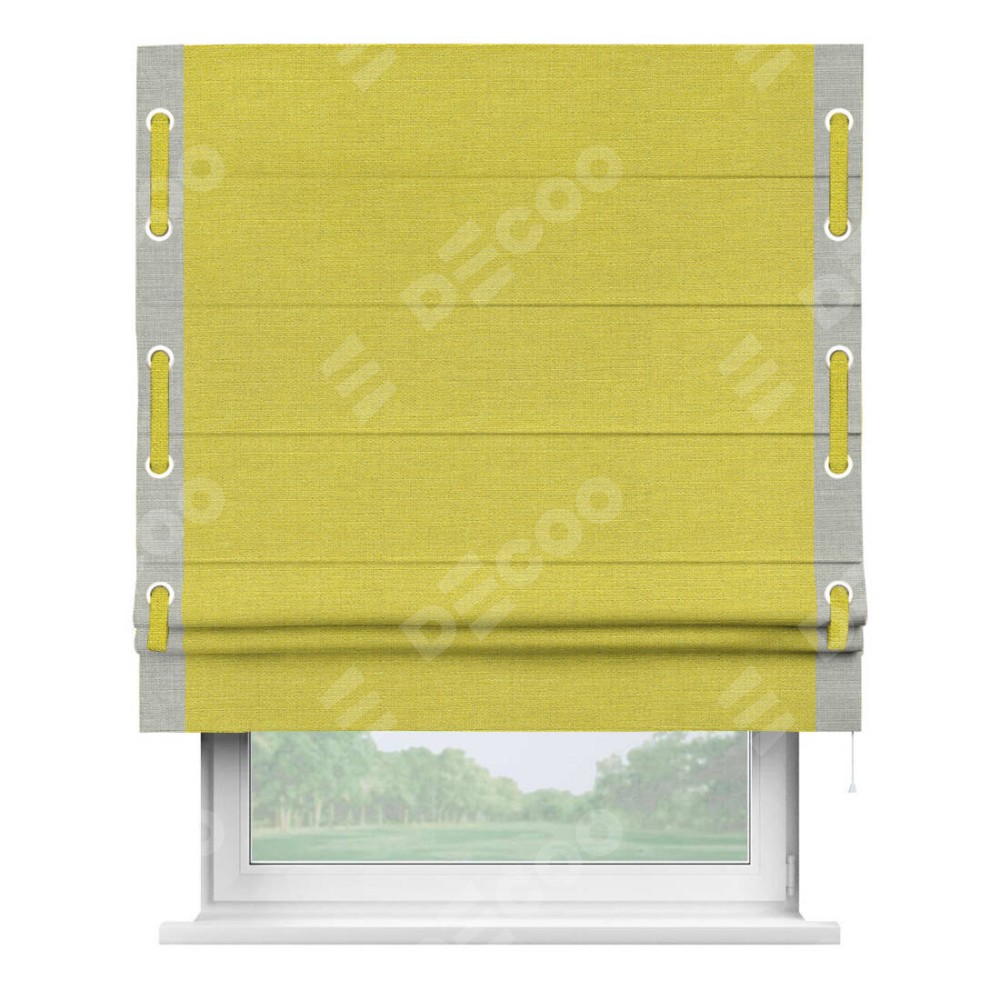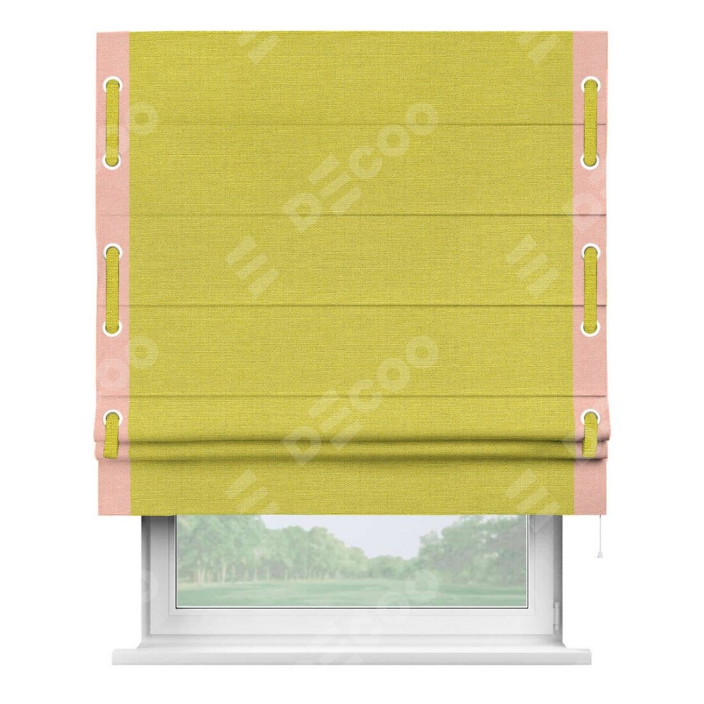 Римская штора «Кортин» с кантом Стрим Дуо (люверсы с пояском), для проема, ткань лён салатовый