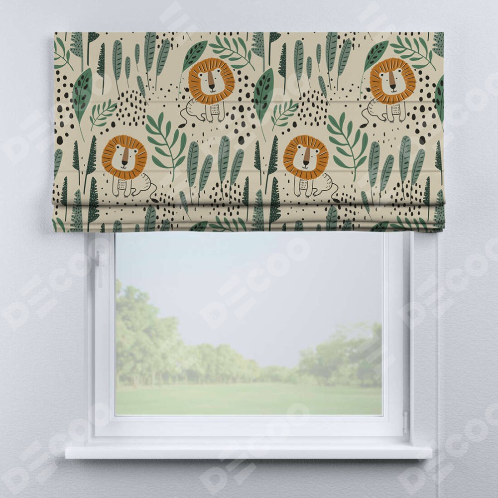 Римская штора «Кортин» для проема «Лев из джунглей» отлично подойдёт для интерьера: в детскую.