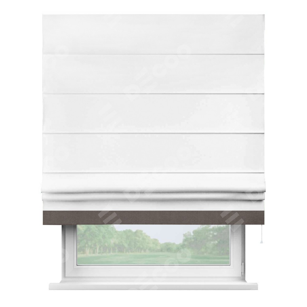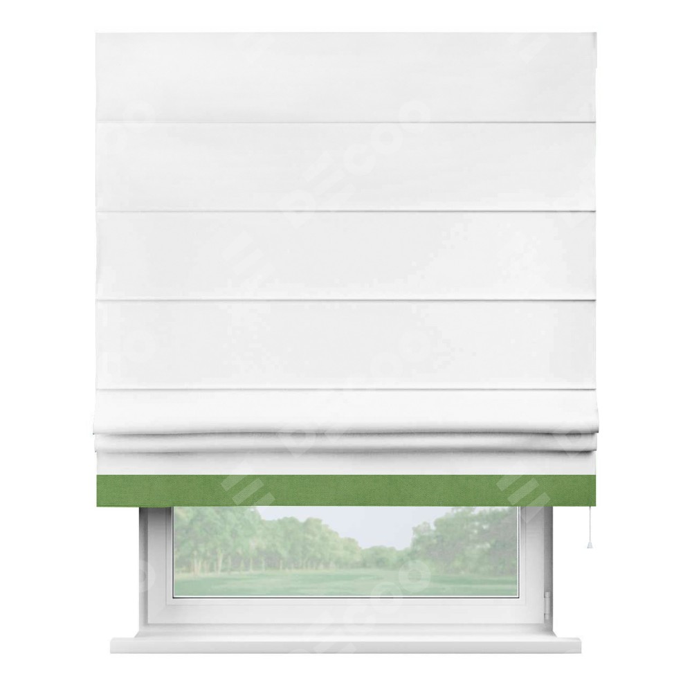 Римская штора производителя «Cortin», используется для проёма, пошита из ткани вельвет белоснежный, артикул ткани 19192. Отделка шторы кантом «Джестер», ткань для канта используется из вельвета разной расцветки на выбор. Имеет универсальный механизм и подходит для монтажа: на потолок, на стену и в нишу.