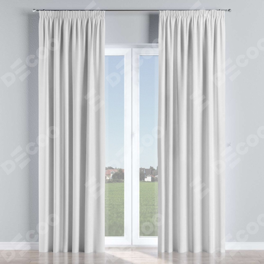 Комплект прямых штор, от производителя «Cortin», пошиты из ткани лён белоснежный, артикул ткани 7438. С изнаночной стороны в верхней части штор пристрачивается шторная лента с декоративными складками «Карандаш». Для создания элегантных складок прямые шторы шьются по стандарту с коэффициентом 1:2 (на 100 см. ширины проёма 200 см. ширины ткани).