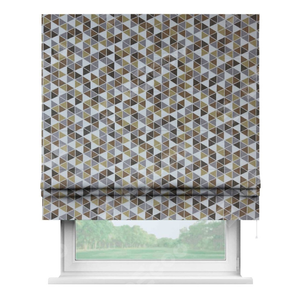 Римская штора «Кортин» для проема, ткань димаут «Треугольники коричневые»