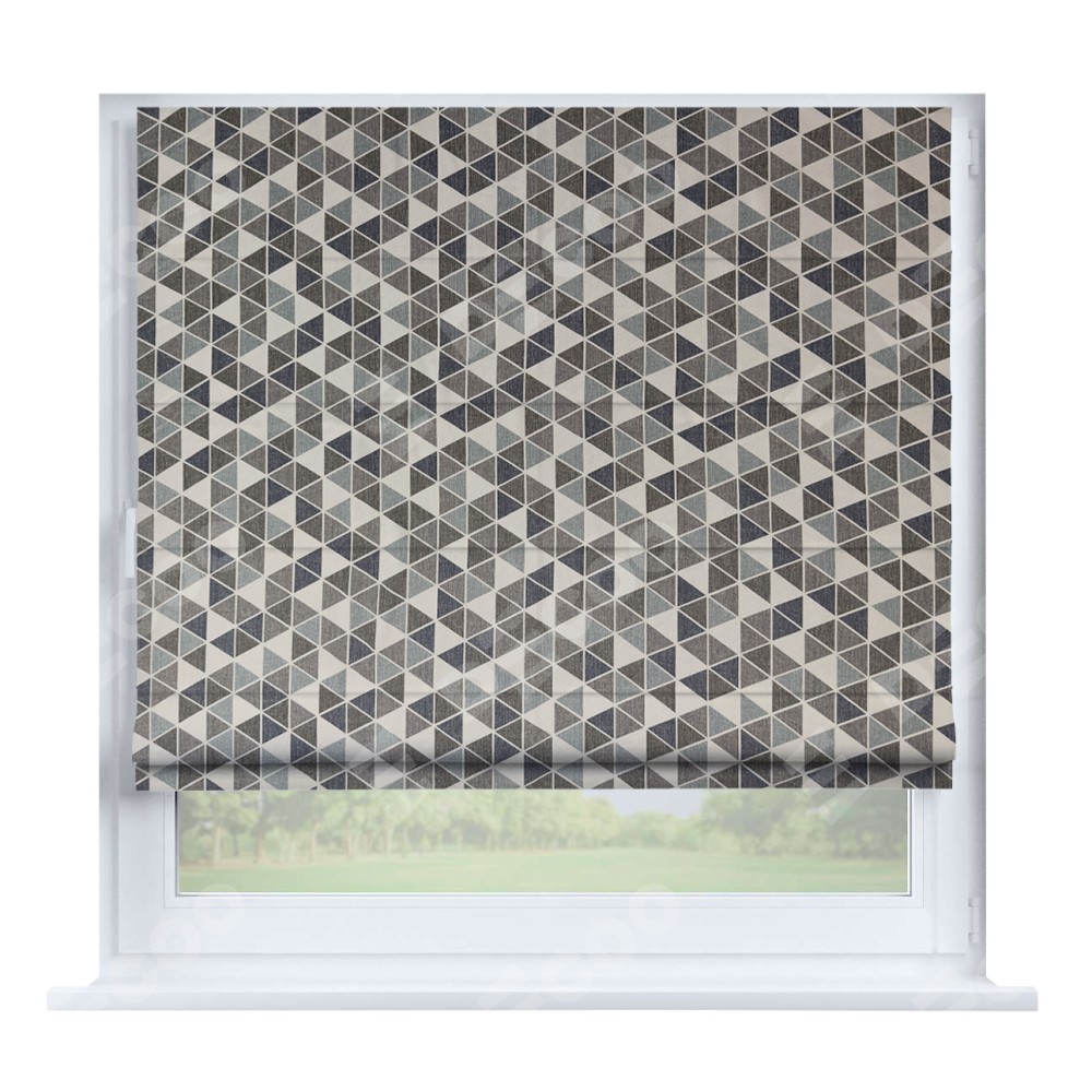 Римская штора «Кортин» на створку, ткань димаут «Треугольники синие»