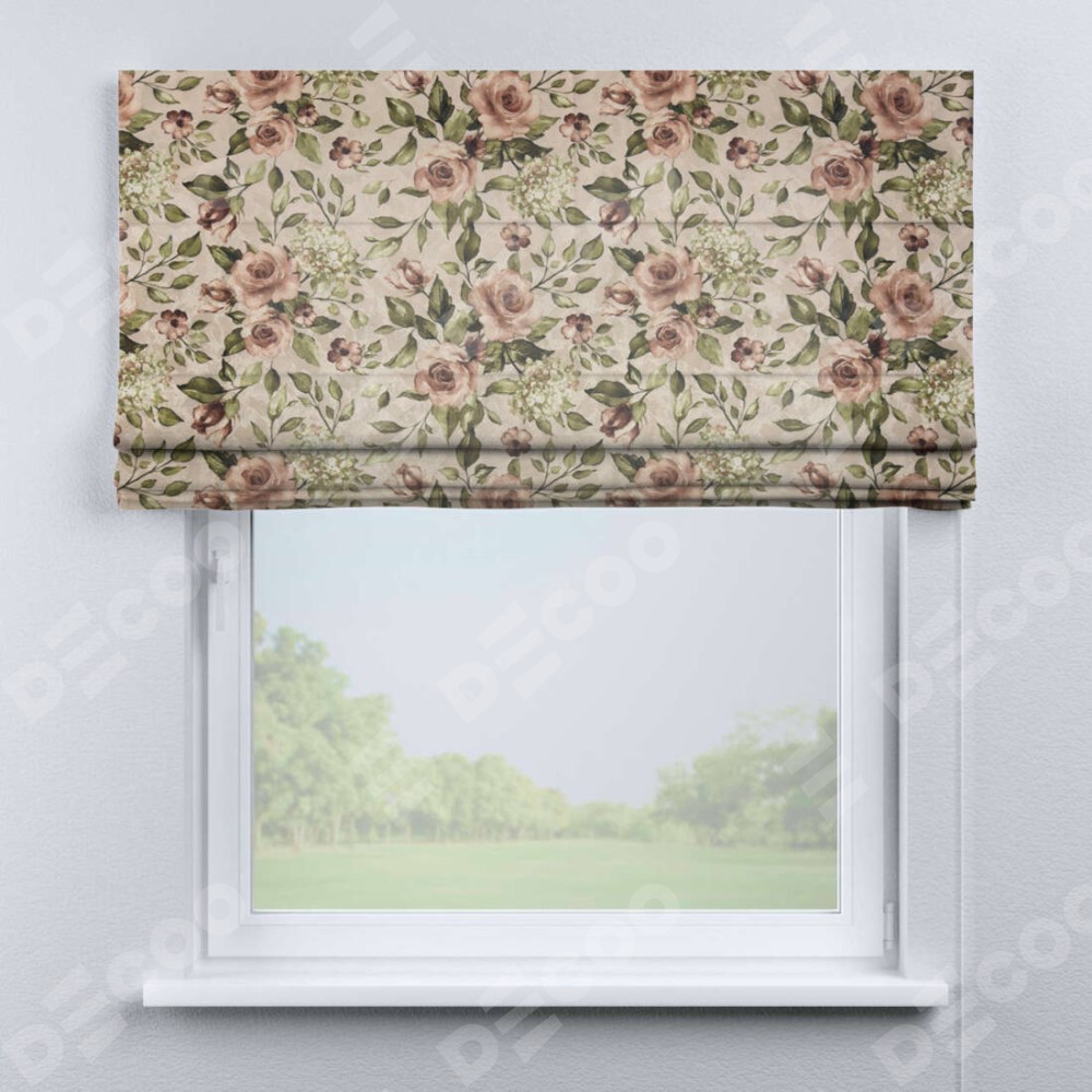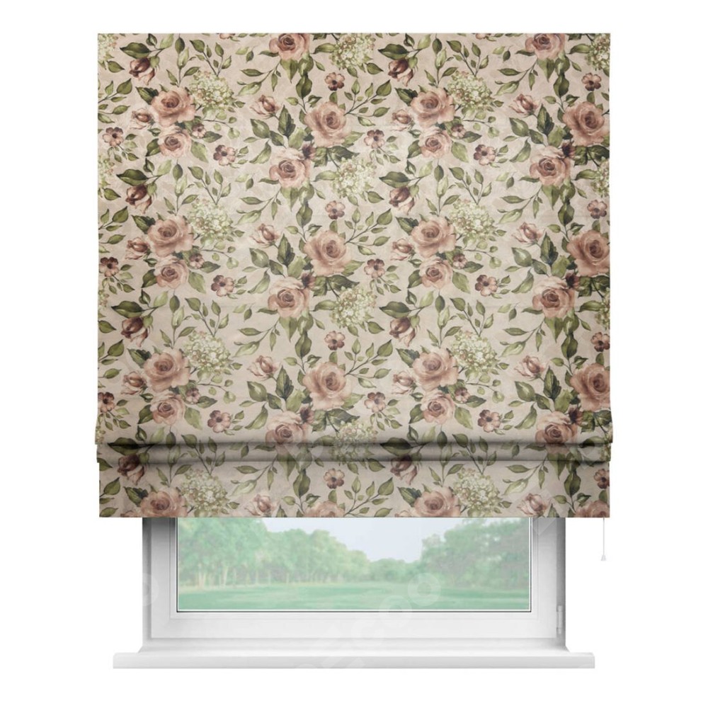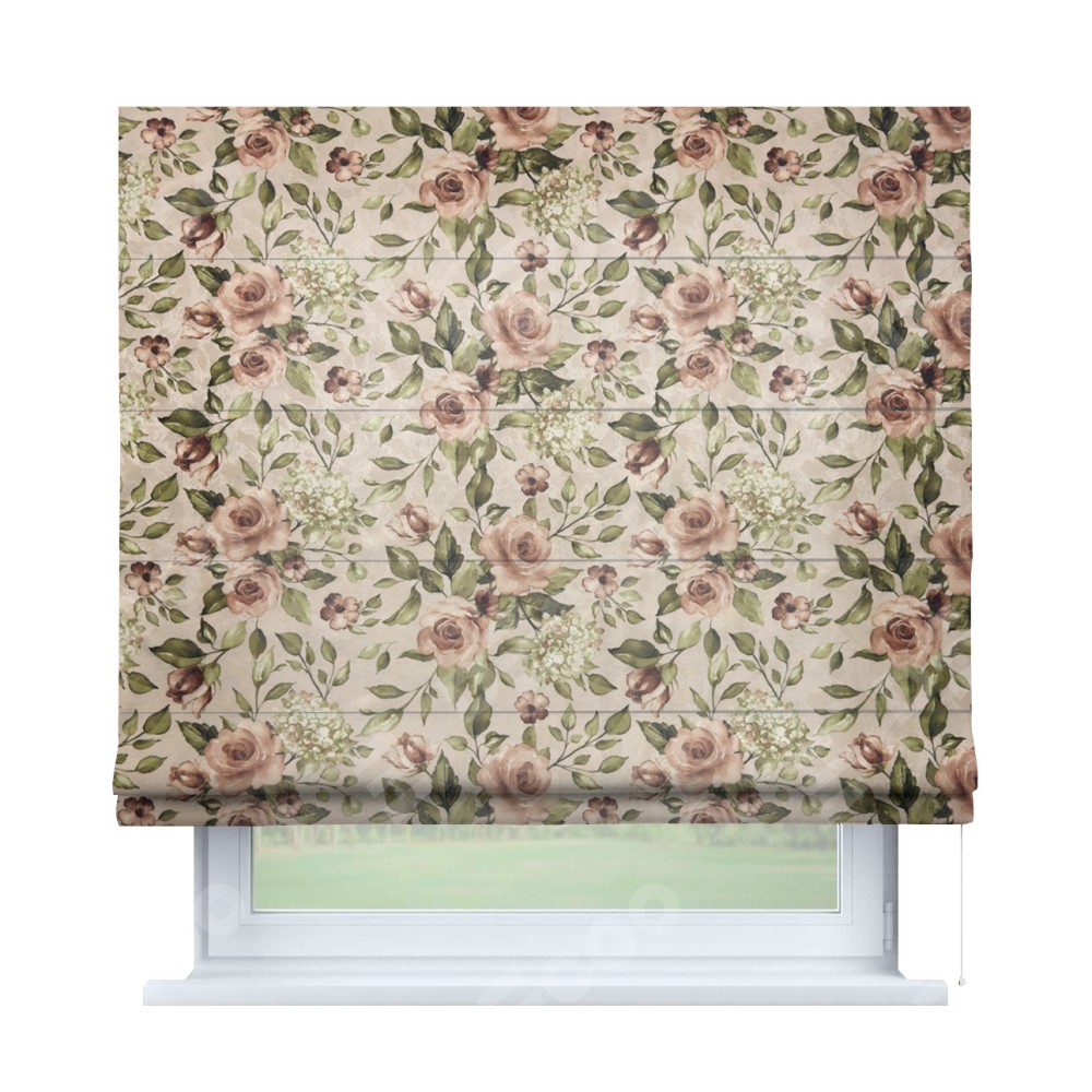 Римская штора «Кортин» для проема, ткань «Розы бежевые»