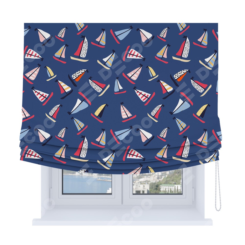 Римская штора Soft производителя «Cortin», используется для проёма, пошита из ткани блэкаут с нанесением сублимационной печати «Морское приключение». Имеет универсальный механизм и подходит для монтажа: на потолок, на стену и в нишу. В отличие от стандартных римских штор, римская штора Soft не имеет горизонтальных вставок и нижнего отвеса. Это позволяет ткани произвольно драпироваться в свободные мягкие складки.