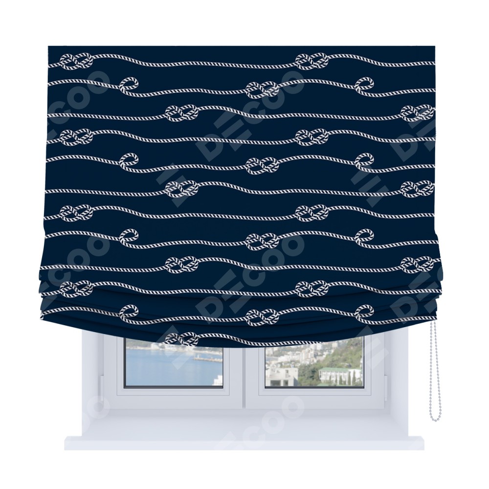 Римская штора Soft с мягкими складками, «Морской узел» представлена к заказу по по вашим размерам. Её артикул: 22235. Стоимость будет зависеть от размеров и стартует от 3 112 руб. В интернет-магазине Decoo есть возможность выбрать товар в любых размерных вариациях.