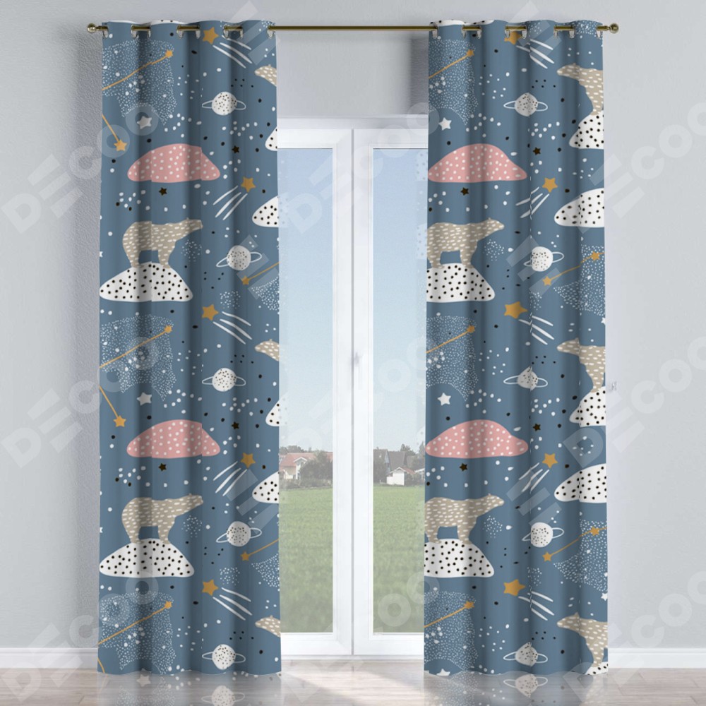 Комплект прямых штор, от производителя «Cortin», пошиты из ткани блэкаут с нанесением сублимационной печати «Белые медведи». Данная модель пошита на люверсах, комплектуется на выбор круглым карнизом и подходит для монтажа на стену или потолок. Прямые шторы на люверсах шьются по стандарту с коэффициентом 1/2 (на 100 см. ширины проёма 200 см. ширины ткани), отличительным преимуществом данной модели является простой способ монтажа. Достаточно повесить ее на трубу и штора готова!