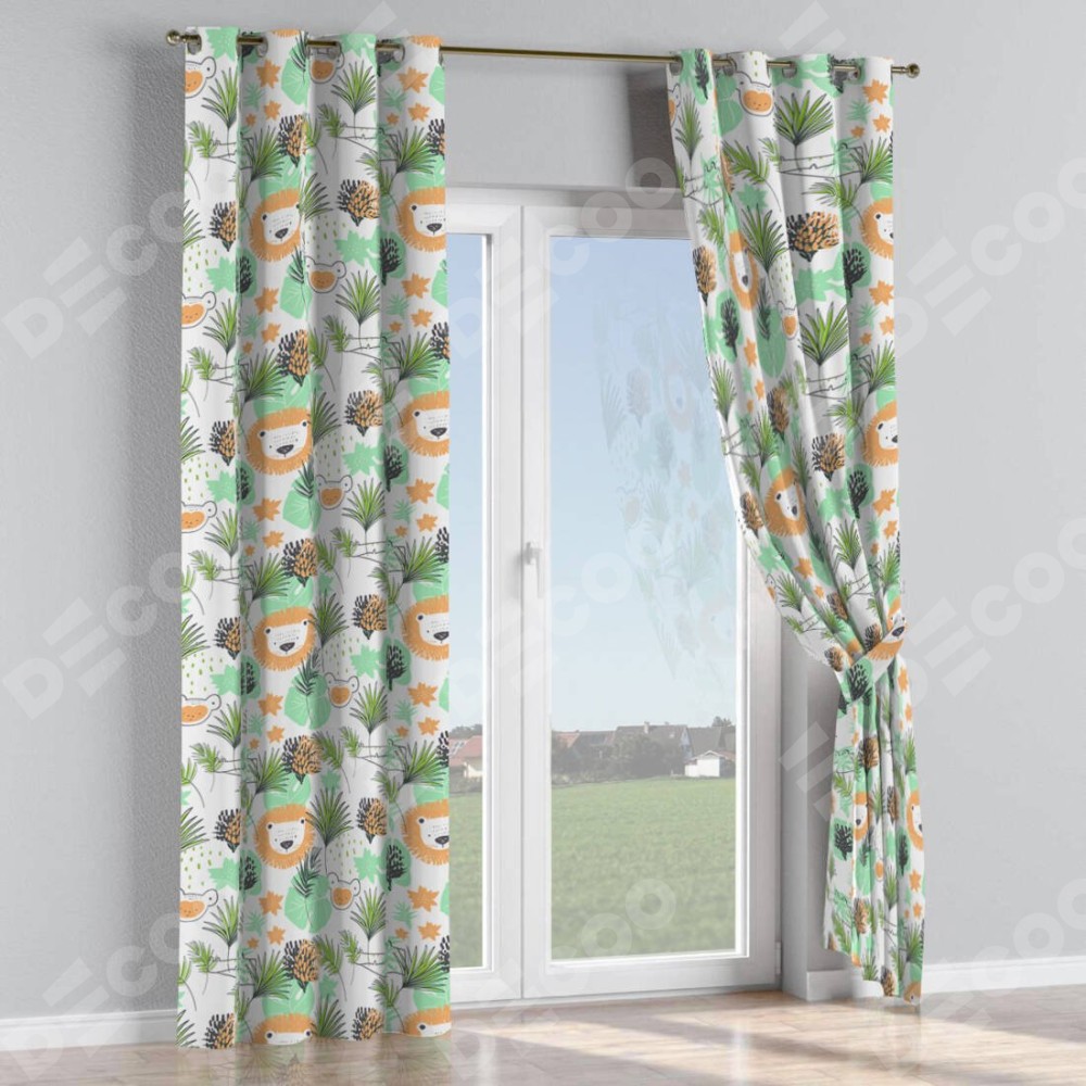 Комплект прямых штор, от производителя «Cortin», пошиты из ткани блэкаут с нанесением сублимационной печати «Животные из джунглей». Данная модель пошита на люверсах, комплектуется на выбор круглым карнизом и подходит для монтажа на стену или потолок. Прямые шторы на люверсах шьются по стандарту с коэффициентом 1/2 (на 100 см. ширины проёма 200 см. ширины ткани), отличительным преимуществом данной модели является простой способ монтажа. Достаточно повесить ее на трубу и штора готова!