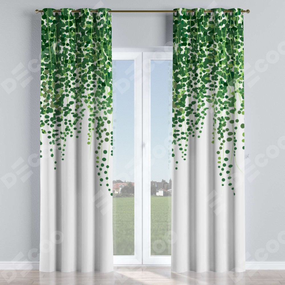 Комплект прямых штор, от производителя «Cortin», пошиты из ткани блэкаут с нанесением сублимационной печати «Зелёный занавес». Данная модель пошита на люверсах, комплектуется на выбор круглым карнизом и подходит для монтажа на стену или потолок. Прямые шторы на люверсах шьются по стандарту с коэффициентом 1/2 (на 100 см. ширины проёма 200 см. ширины ткани), отличительным преимуществом данной модели является простой способ монтажа. Достаточно повесить ее на трубу и штора готова!