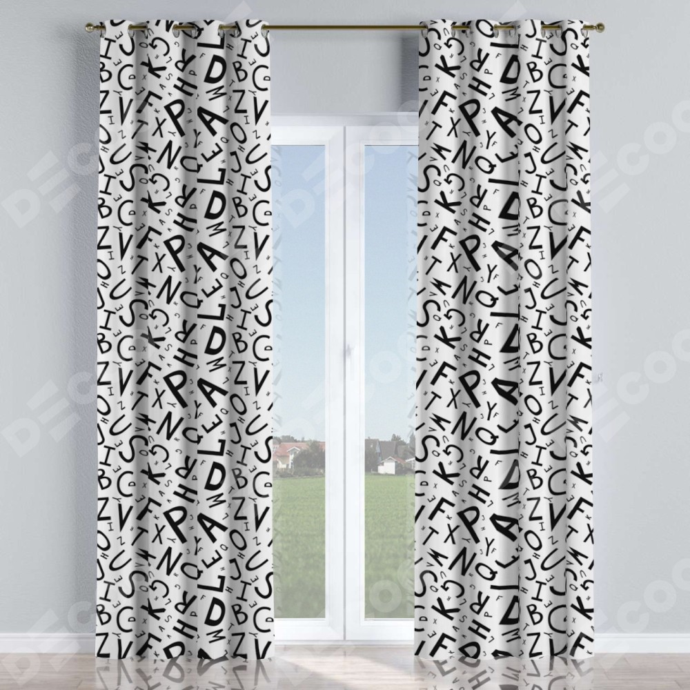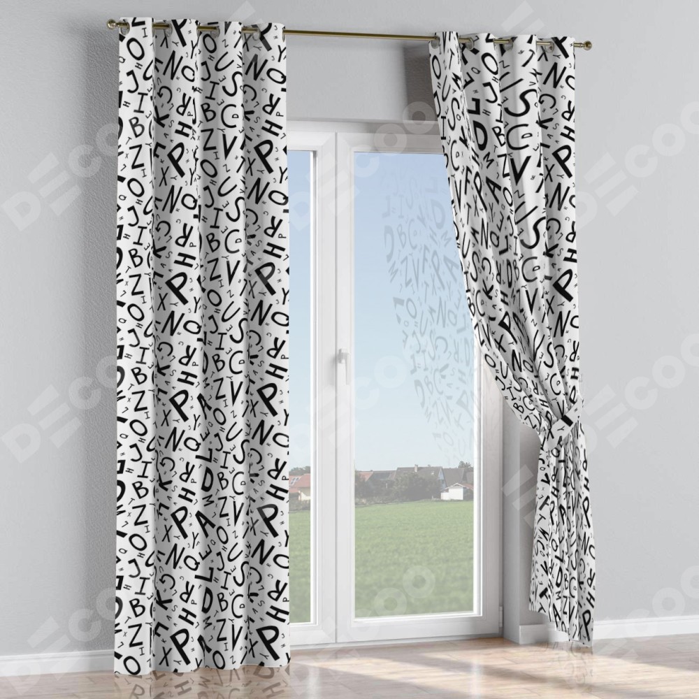 Комплект прямых штор, от производителя «Cortin», пошиты из ткани блэкаут с нанесением сублимационной печати «Литеры на белом». Данная модель пошита на люверсах, комплектуется на выбор круглым карнизом и подходит для монтажа на стену или потолок. Прямые шторы на люверсах шьются по стандарту с коэффициентом 1/2 (на 100 см. ширины проёма 200 см. ширины ткани), отличительным преимуществом данной модели является простой способ монтажа. Достаточно повесить ее на трубу и штора готова!