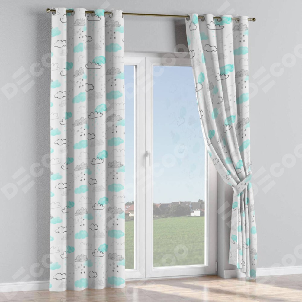 Комплект прямых штор, от производителя «Cortin», пошиты из ткани блэкаут с нанесением сублимационной печати «Облака и звёзды». Данная модель пошита на люверсах, комплектуется на выбор круглым карнизом и подходит для монтажа на стену или потолок. Прямые шторы на люверсах шьются по стандарту с коэффициентом 1/2 (на 100 см. ширины проёма 200 см. ширины ткани), отличительным преимуществом данной модели является простой способ монтажа. Достаточно повесить ее на трубу и штора готова!