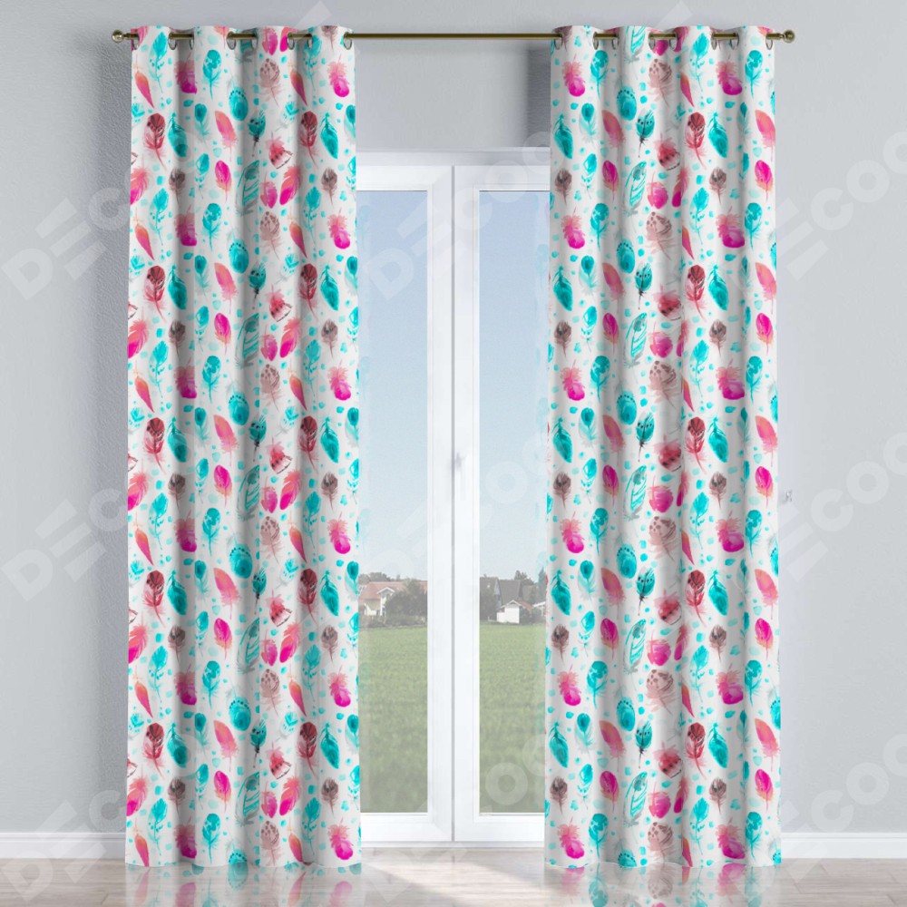 Комплект прямых штор, от производителя «Cortin», пошиты из ткани блэкаут с нанесением сублимационной печати «Перья». Данная модель пошита на люверсах, комплектуется на выбор круглым карнизом и подходит для монтажа на стену или потолок. Прямые шторы на люверсах шьются по стандарту с коэффициентом 1/2 (на 100 см. ширины проёма 200 см. ширины ткани), отличительным преимуществом данной модели является простой способ монтажа. Достаточно повесить ее на трубу и штора готова!