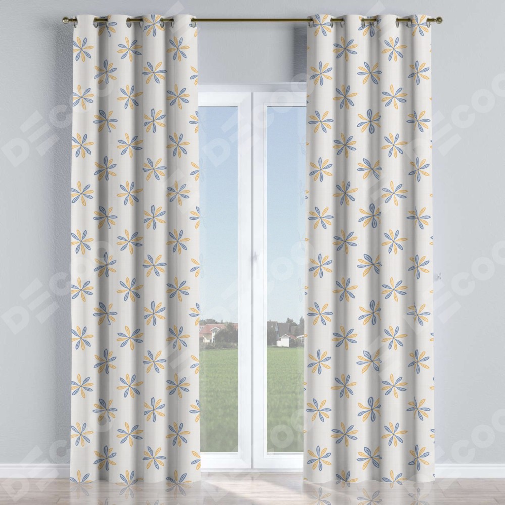 Комплект штор на люверсах «Ромашки кантри» отлично подойдёт для интерьера гостиная, для кухни и для коттеджа.