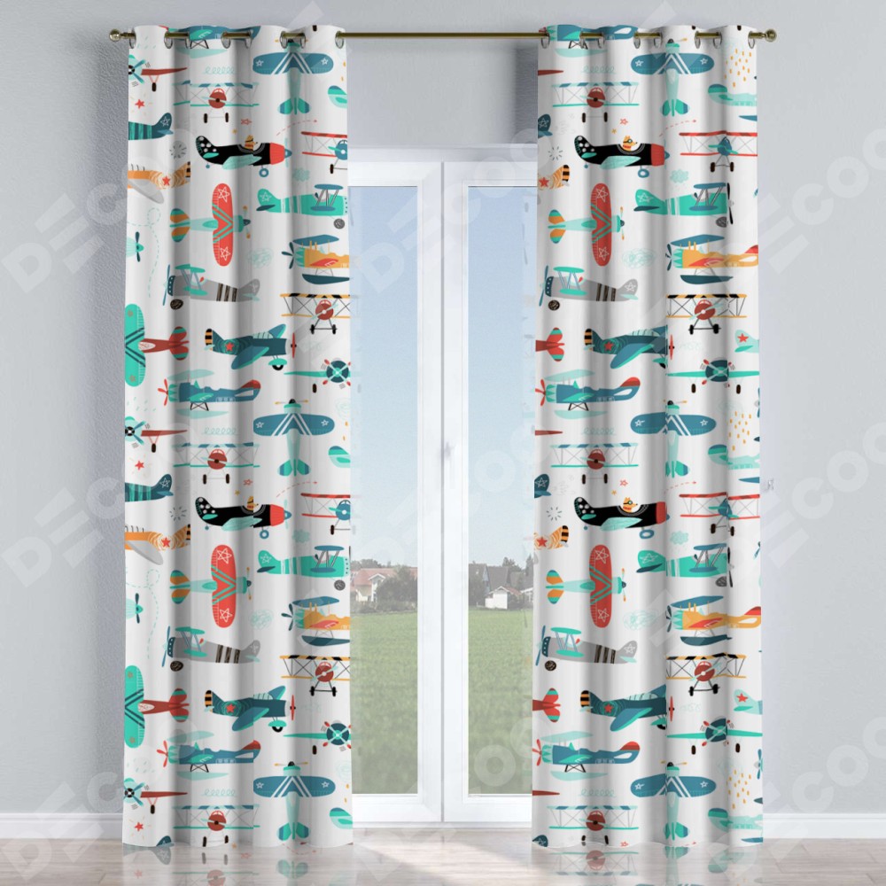 Комплект прямых штор, от производителя «Cortin», пошиты из ткани блэкаут с нанесением сублимационной печати «Самолёты и пилоты». Данная модель пошита на люверсах, комплектуется на выбор круглым карнизом и подходит для монтажа на стену или потолок. Прямые шторы на люверсах шьются по стандарту с коэффициентом 1/2 (на 100 см. ширины проёма 200 см. ширины ткани), отличительным преимуществом данной модели является простой способ монтажа. Достаточно повесить ее на трубу и штора готова!