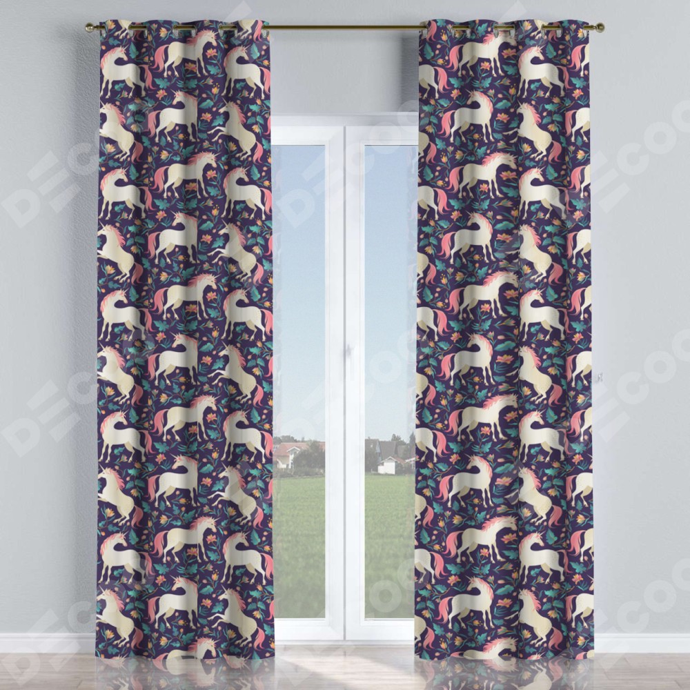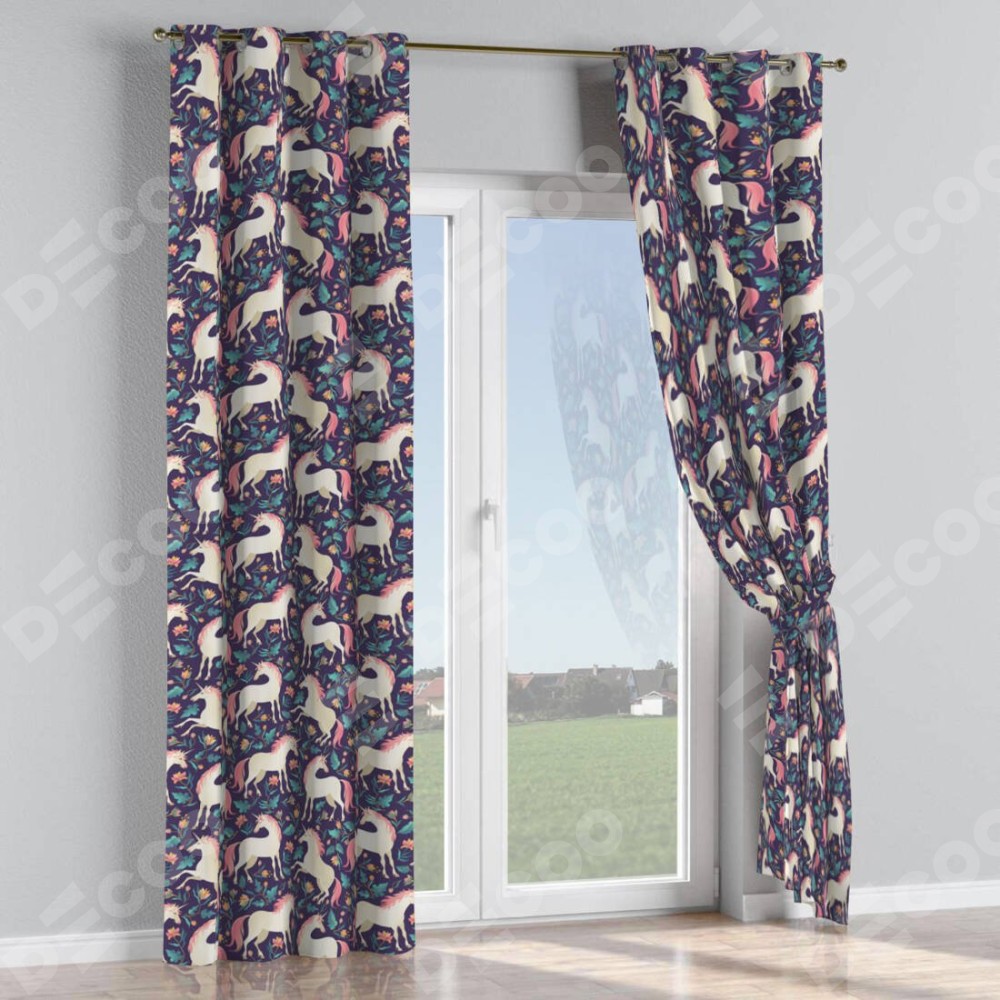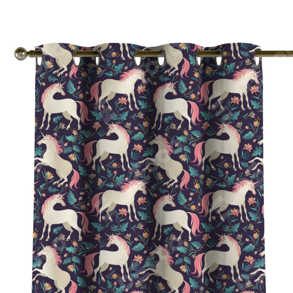 Комплект прямых штор, от производителя «Cortin», пошиты из ткани блэкаут с нанесением сублимационной печати «Сказочные единороги». Данная модель пошита на люверсах, комплектуется на выбор круглым карнизом и подходит для монтажа на стену или потолок. Прямые шторы на люверсах шьются по стандарту с коэффициентом 1/2 (на 100 см. ширины проёма 200 см. ширины ткани), отличительным преимуществом данной модели является простой способ монтажа. Достаточно повесить ее на трубу и штора готова!