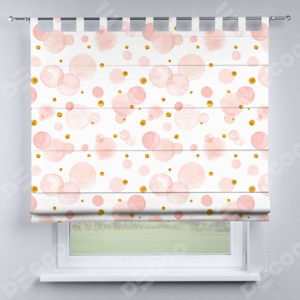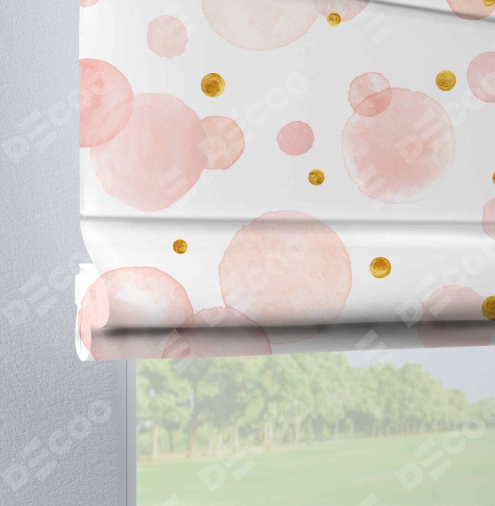 Римская штора «Кортин» на петлях «Круги и точки» отлично подойдёт для интерьера: на балкон, в кухню и в детскую.
