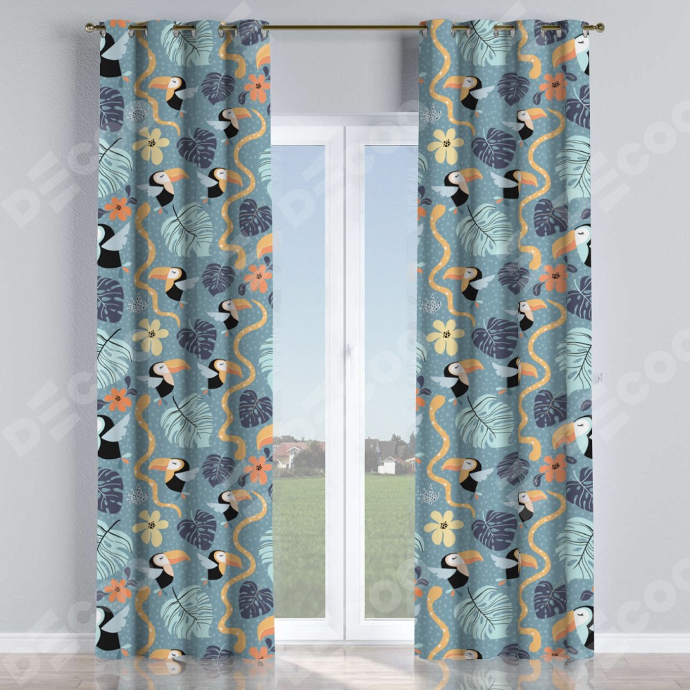 Комплект прямых штор, от производителя «Cortin», пошиты из ткани блэкаут с нанесением сублимационной печати «Экзотические птицы». Данная модель пошита на люверсах, комплектуется на выбор круглым карнизом и подходит для монтажа на стену или потолок. Прямые шторы на люверсах шьются по стандарту с коэффициентом 1/2 (на 100 см. ширины проёма 200 см. ширины ткани), отличительным преимуществом данной модели является простой способ монтажа. Достаточно повесить ее на трубу и штора готова!