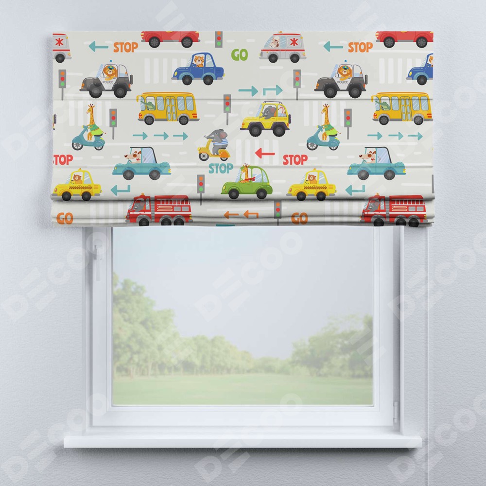 Римская штора «Кортин» для проема «Дорожные правила»