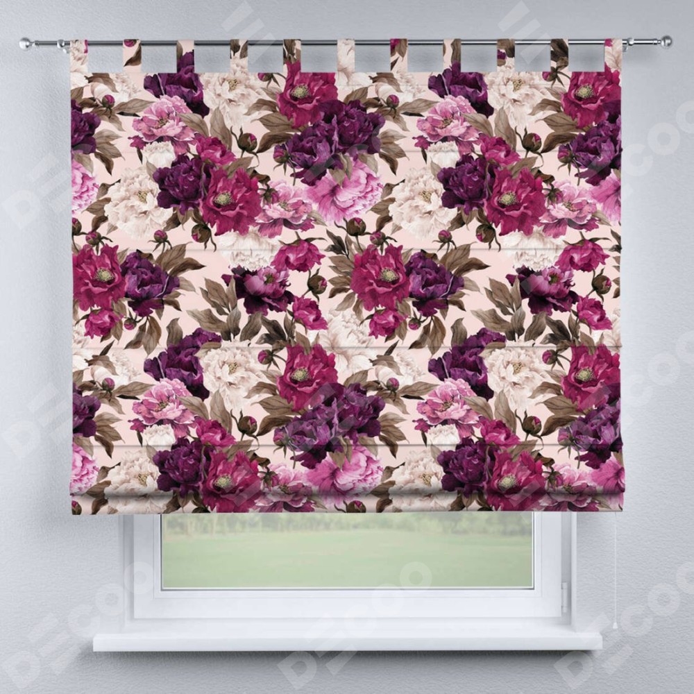 Римская штора на петлях «Великолепные пионы» предоставлена в следующих характеристиках: