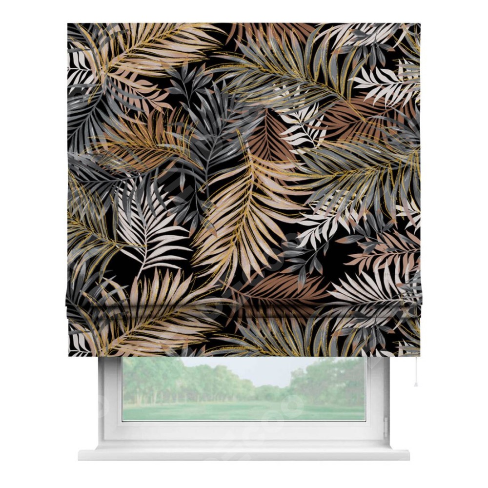 Римская штора производителя «Cortin», используется для проёма, пошита из ткани блэкаут с нанесением сублимационной печати «Закат в тропиках». Имеет универсальный механизм и подходит для монтажа: на потолок, на стену и в нишу.