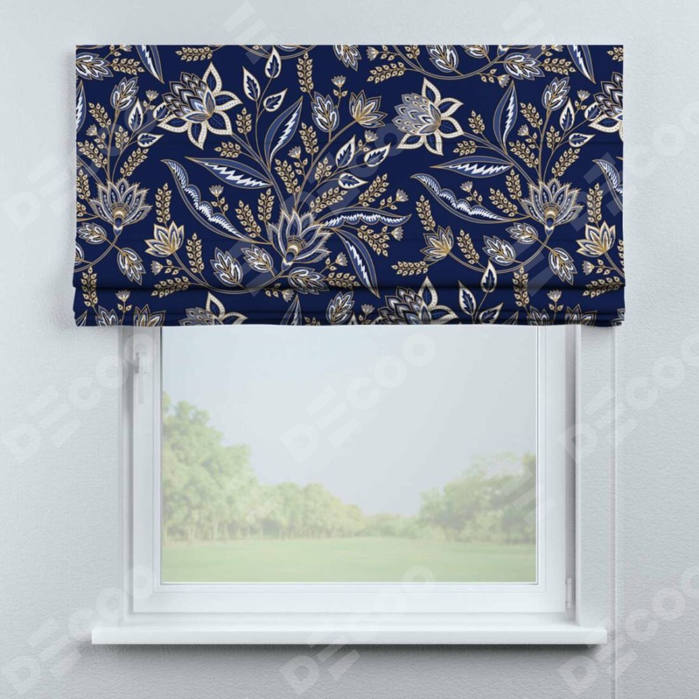 Римская штора «Кортин» для проема «Индиго батик» предоставлена в следующих характеристиках:
