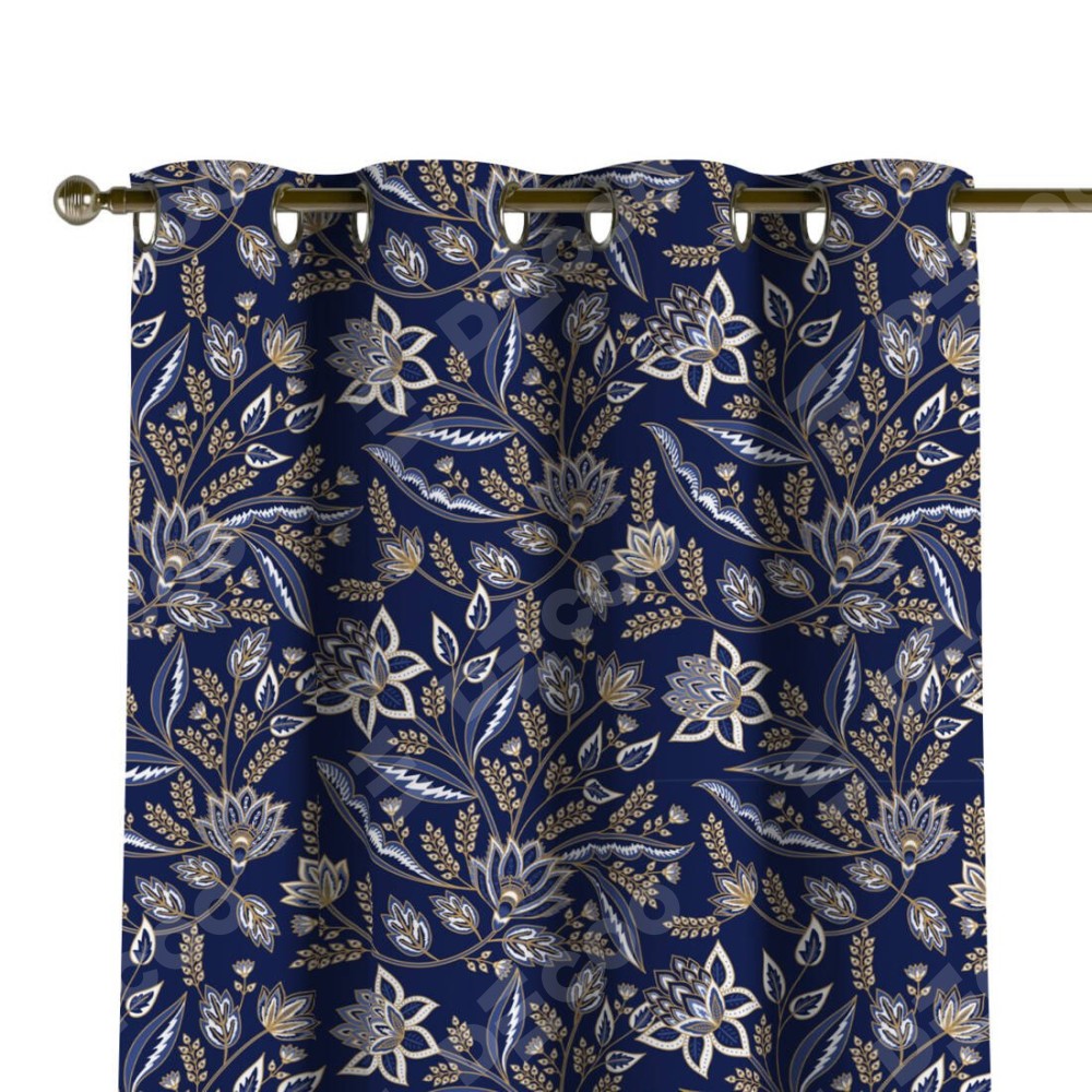 Комплект прямых штор, от производителя «Cortin», пошиты из ткани блэкаут с нанесением сублимационной печати «Индиго батик». Данная модель пошита на люверсах, комплектуется на выбор круглым карнизом и подходит для монтажа на стену или потолок. Прямые шторы на люверсах шьются по стандарту с коэффициентом 1/2 (на 100 см. ширины проёма 200 см. ширины ткани), отличительным преимуществом данной модели является простой способ монтажа. Достаточно повесить ее на трубу и штора готова!