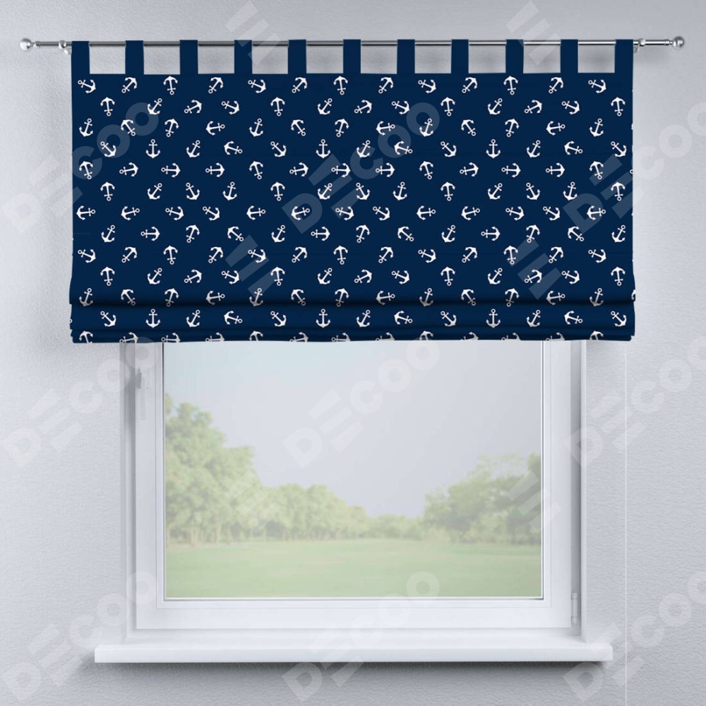 Римская штора производителя «Cortin», используется для проёма, пошита из ткани блэкаут с нанесением сублимационной печати «Морские якори». Данная модель пошита на петлях, комплектуется на выбор круглым карнизом и подходит для монтажа на стену. Римская штора на петлях имеет простую систему регулировки высоты, отличительным преимуществом данной модели является простой способ монтажа. Достаточно повесить ее на трубу и штора готова!